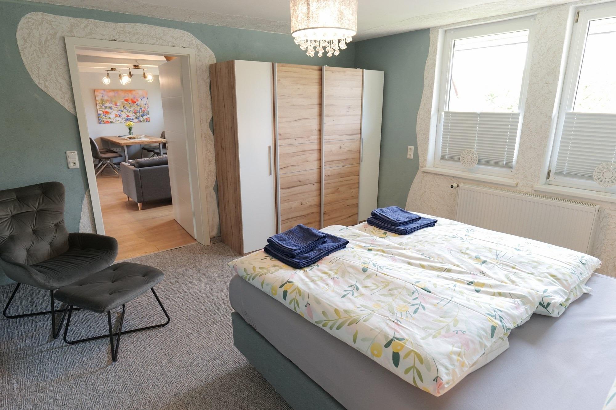 - 1. Schlafzimmer mit Doppelbett (1,80 x 2,00 m), großer Schrank