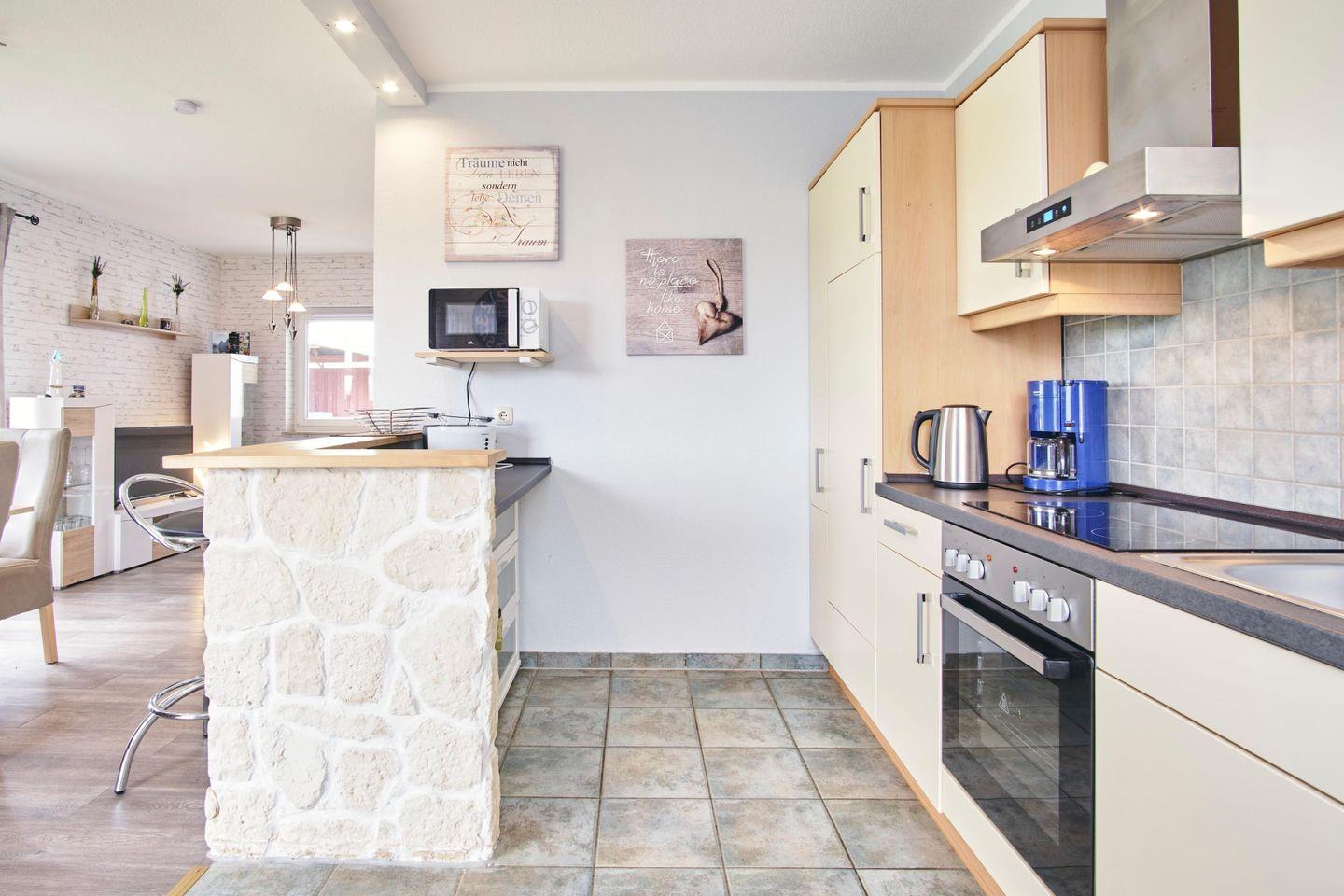 Das Feriendomizil verfügt auf 2 Ebenen über 1 komb. Wohn-/Esszimmer, 1 Küche, 6 Schlafräume, 2 Bäder und einen ca. 500 m² großen, komplett eingezäunten Garten.