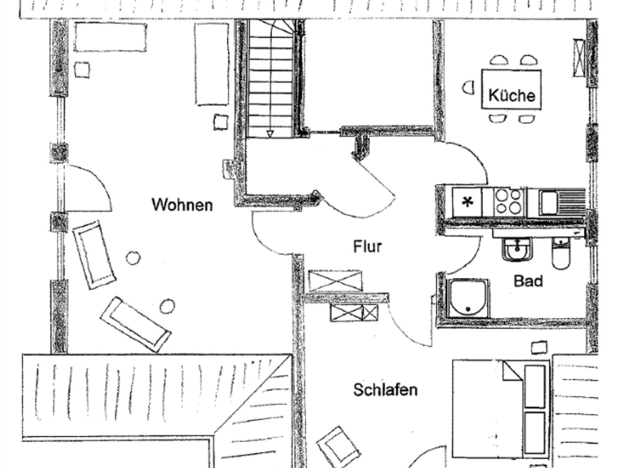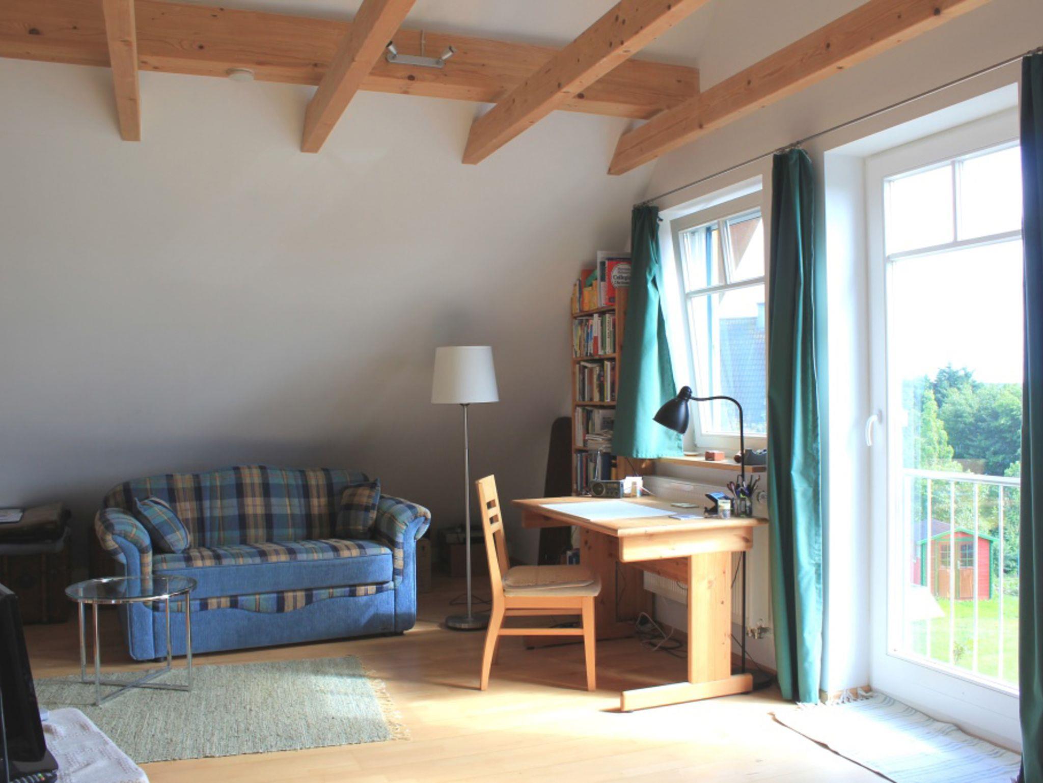 Die schöne Ferienwohnung verfügt über einen kombinierten Wohn-/Schlafraum mit einem Schlafsofa, damit die 2 Personen getrennt schlafen können), französischen Balkon nach Südosten bzw. Südwesten, eine separate Küche mit Herd und Backofen, Esstisch, Internetanschluss, Flachbild-TV, Flur, ein Schlafzimmer mit bequemen Doppelbett, Nachttischen und Leselampen sowie ein Tageslicht-Bad mit Dusche und WC.