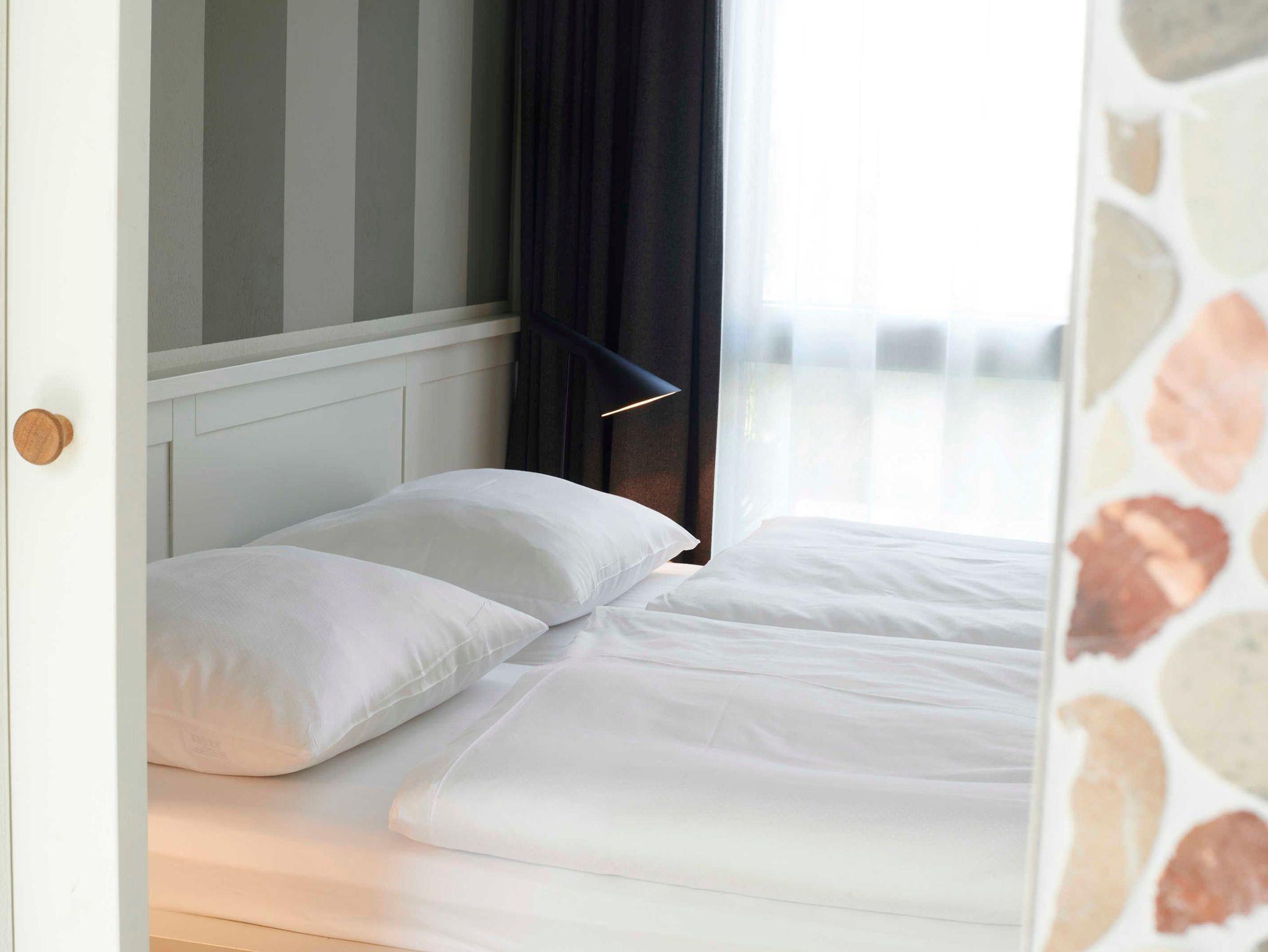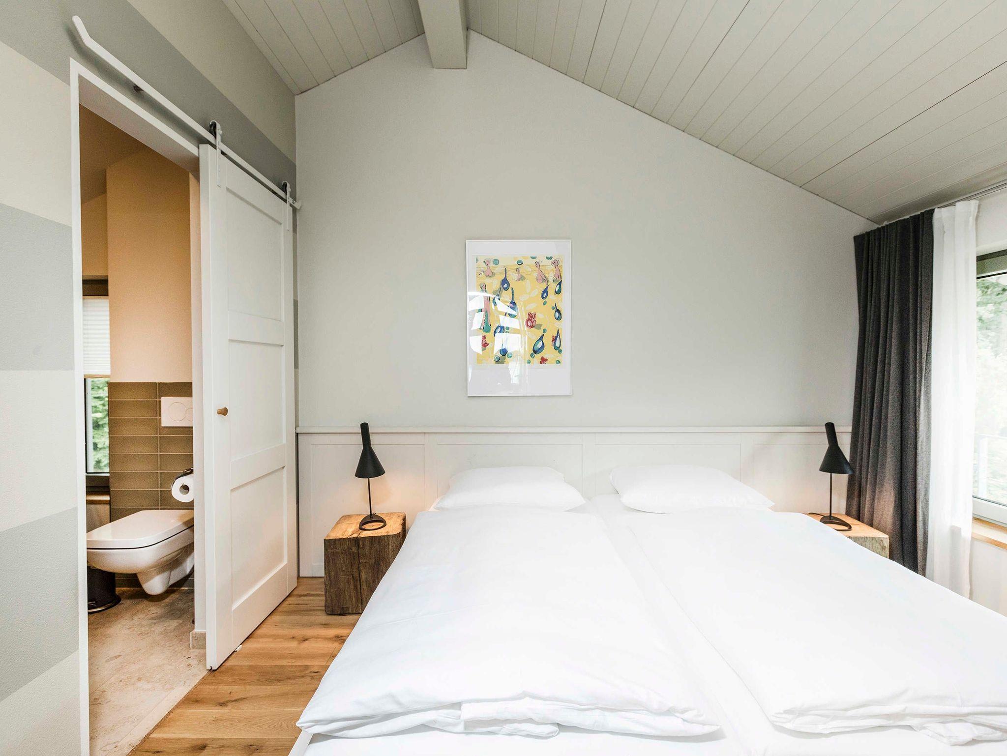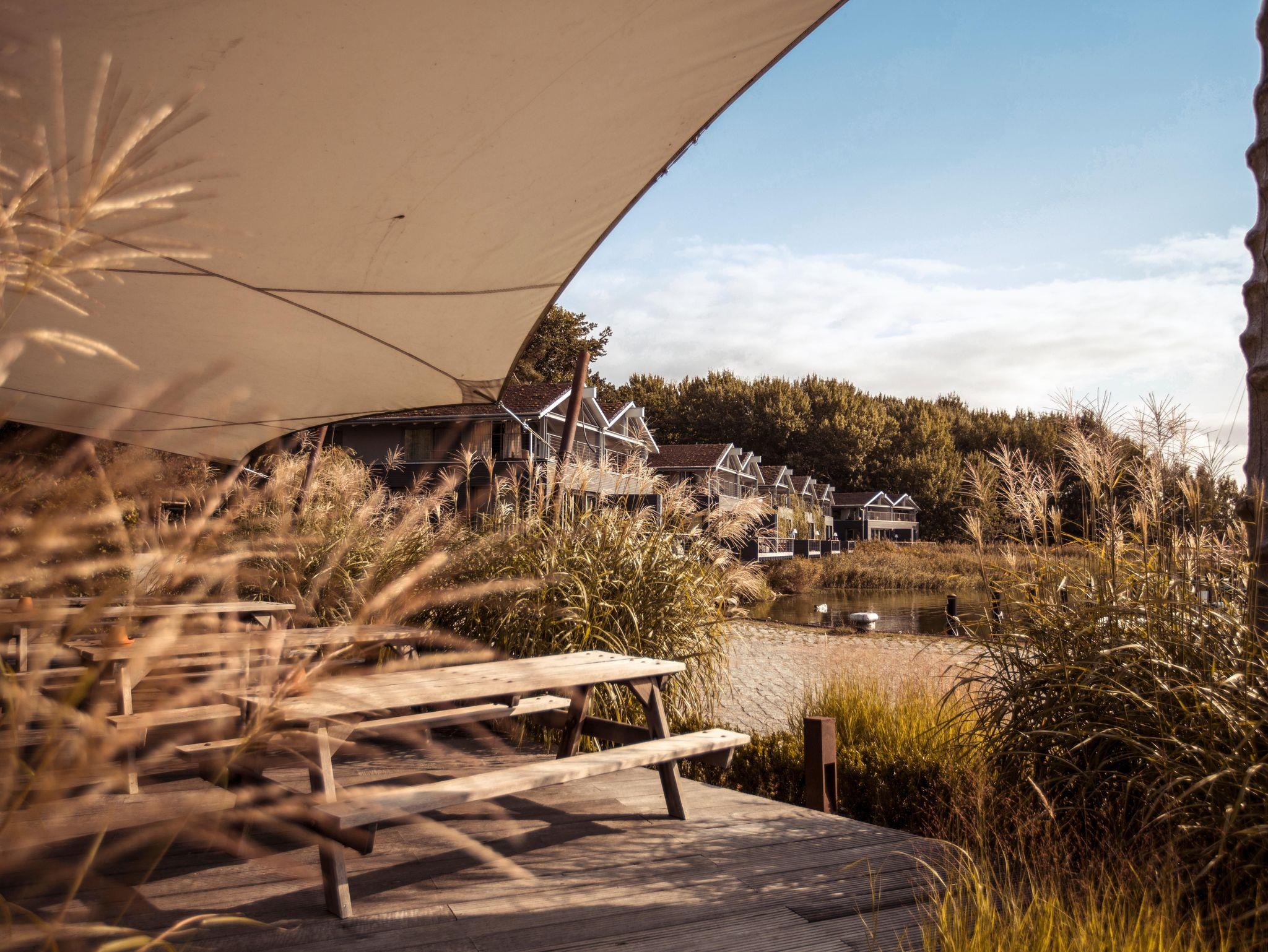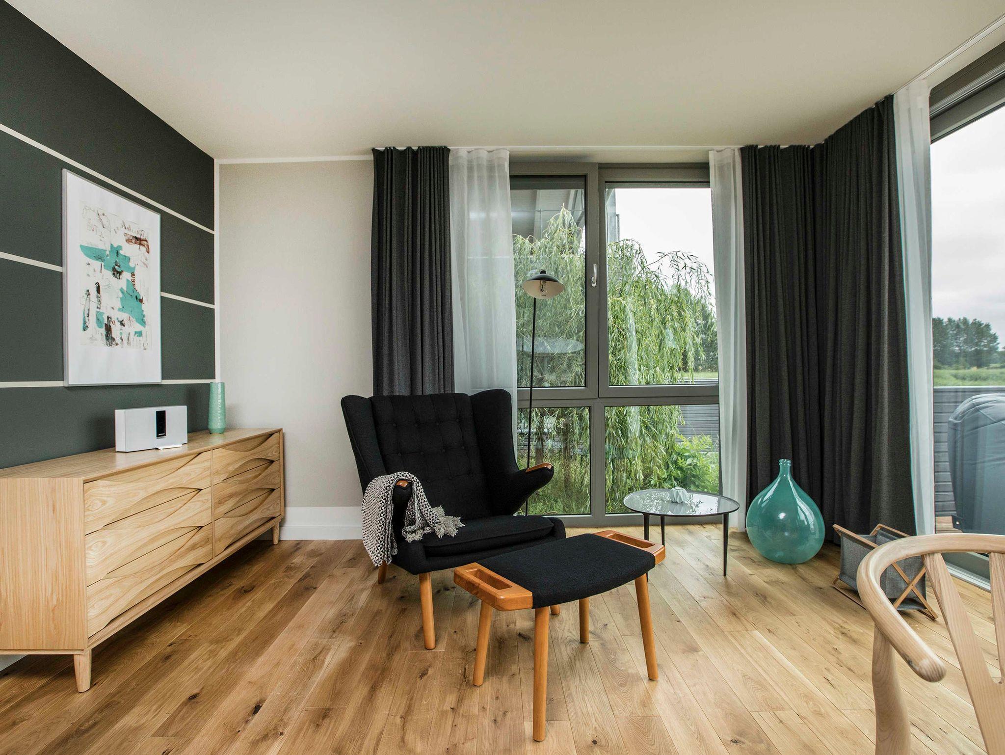 Unsere Uferhäuser bieten höchsten Komfort und traumhafte Ausblicke. Natürliche Materialien wie Holz und Naturstein kombiniert mit Designklassikern des 20. Jahrhunderts bestimmen das Ambiente. Wir haben uns wirklich viel Mühe gegeben mit der Gestaltung und sind begeistert vom Ergebnis.