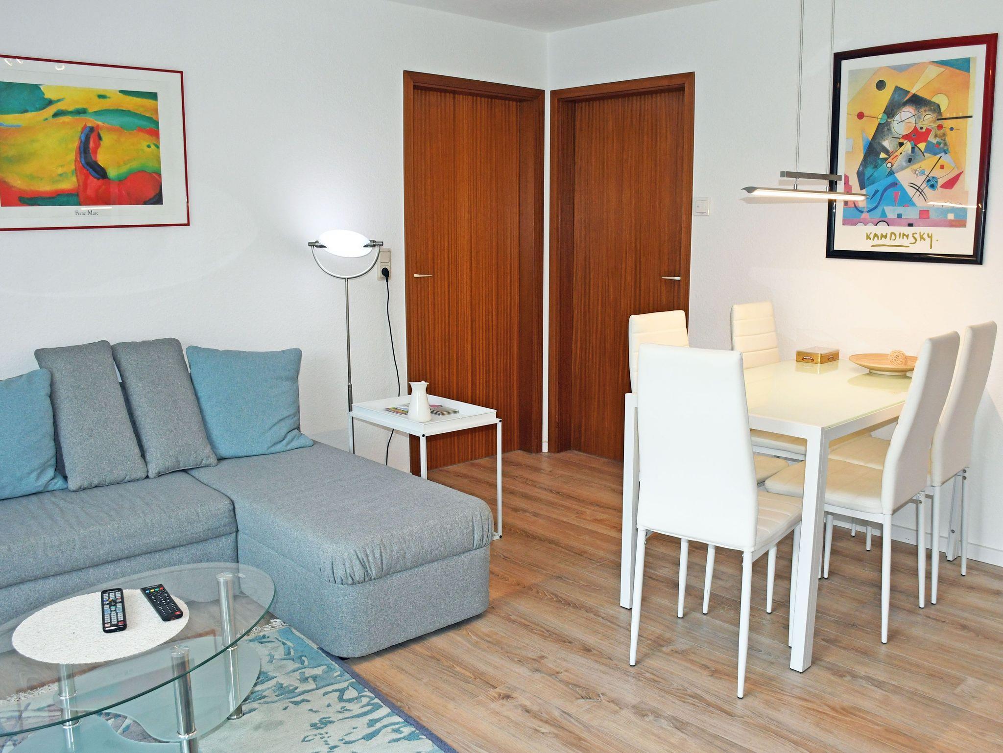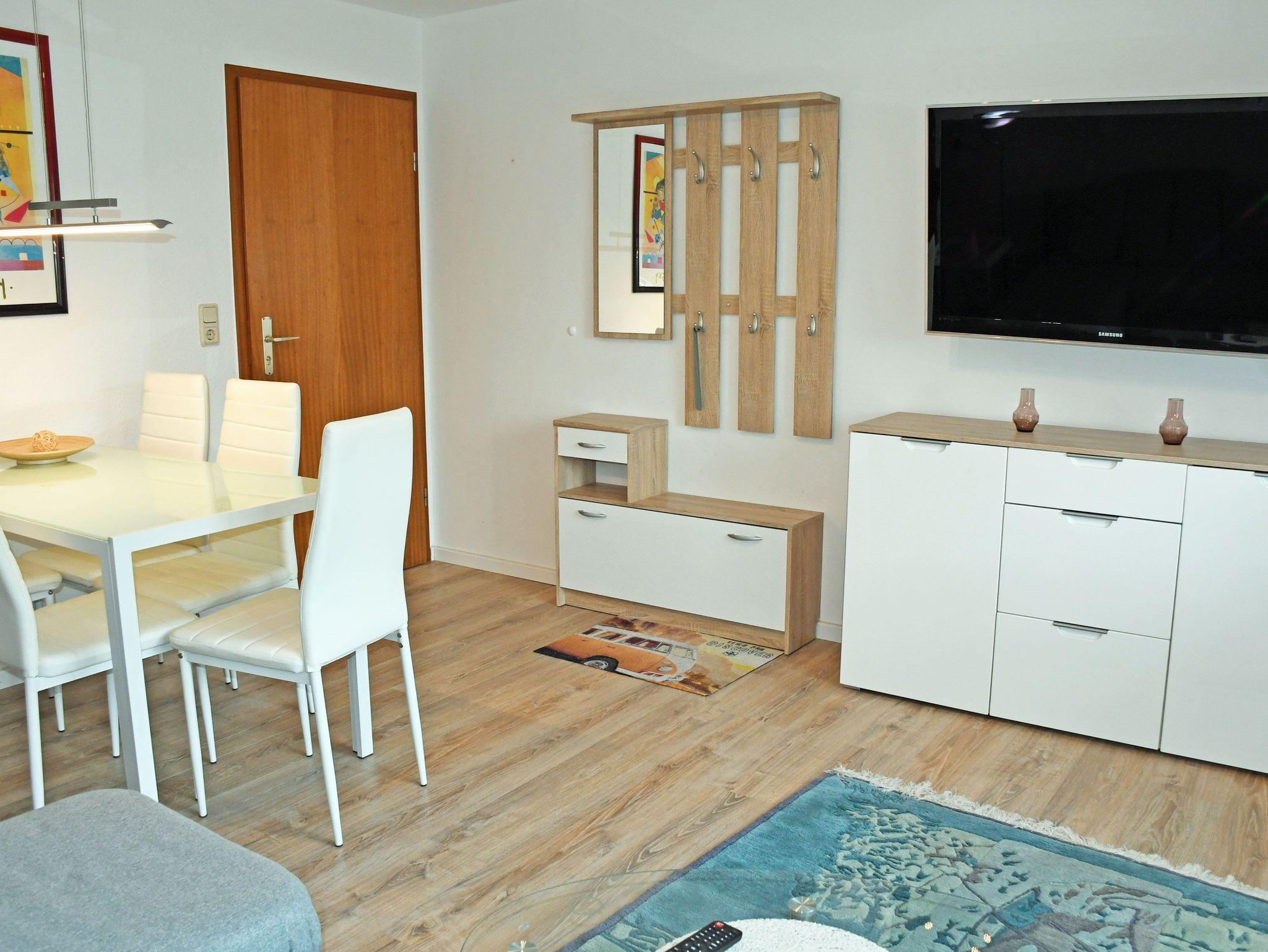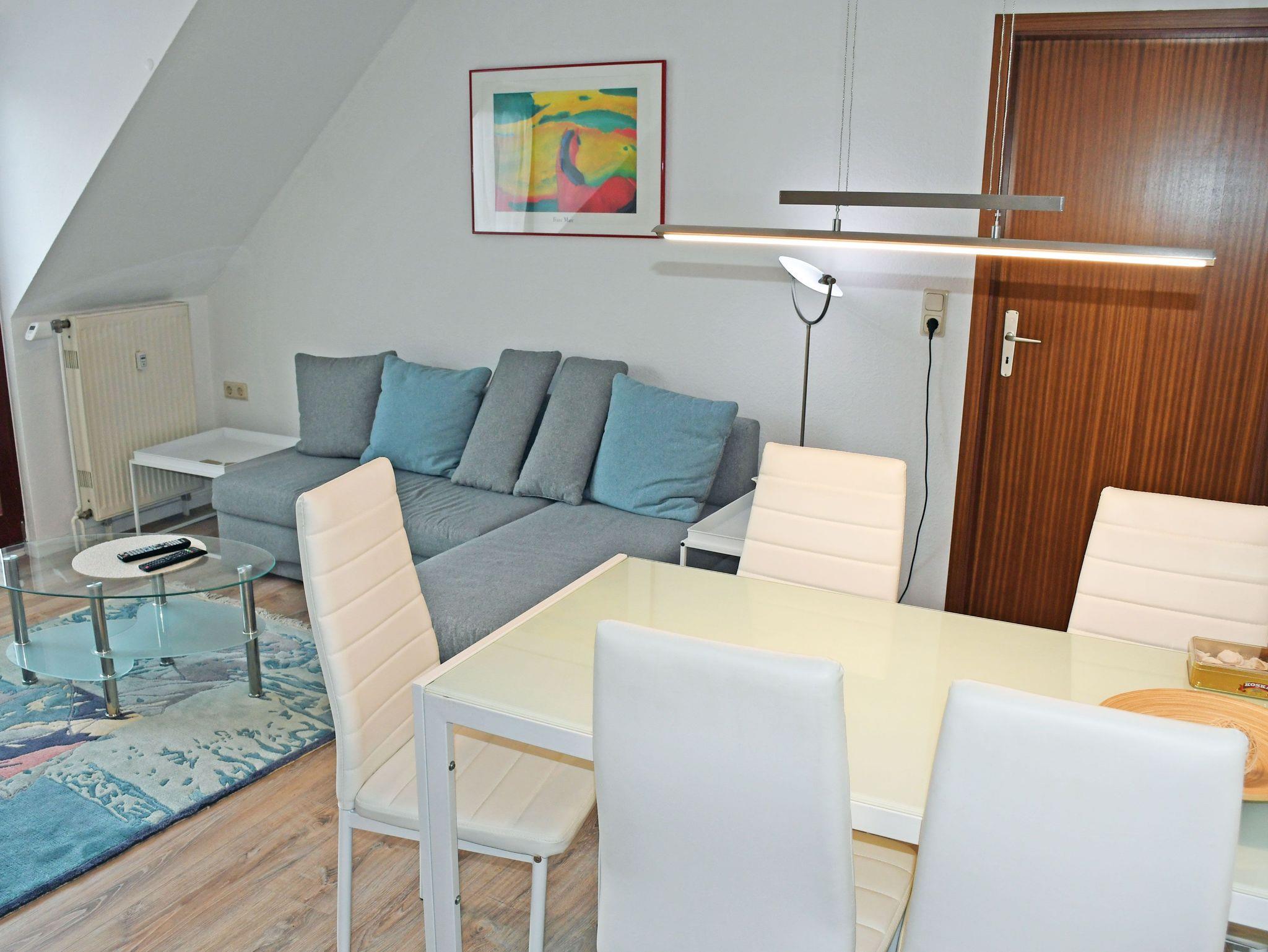 Die Unterkunft im 1. OG bietet auf ca.60qm einen Wohn-/Essbereich mit einem kleinen Eingangsbereich mit Garderobe sowie 2 Balkone (Westseite). In der angrenzenden Küche mit guter Ausstattung können Sie für leibliches Wohl sorgen. Ein kleiner Flur führt zum Tageslichtbad mit Dusche sowie ins Schlafzimmer mit einem gemütlichen Doppelbett, Schrank und einem kleinen Balkon (Westseite). Außerdem gelangen Sie ins zweite Schlafzimmer mit zwei Einzelbetten sowie französischem Balkon.