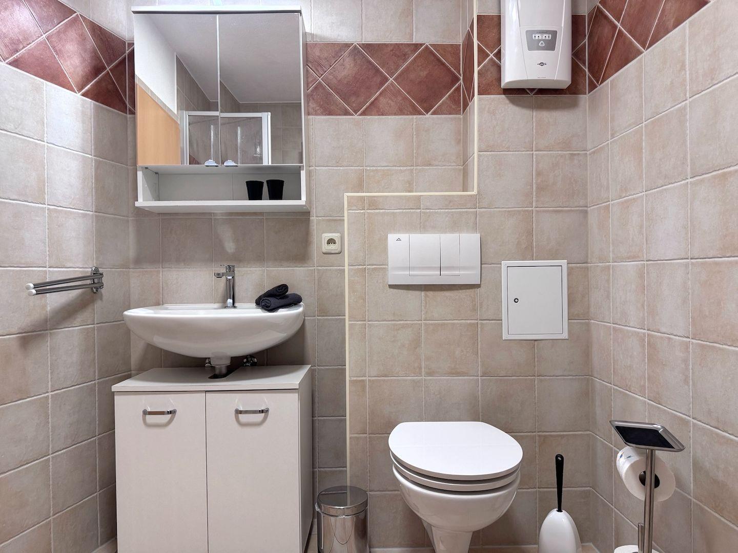 Beide Schlafzimmer sowie der Wohnbereich sind mit pflegeleichten Fliesen ausgestattet. Das Badezimmer verfügt über Dusche, WC, Waschbecken, Spiegel und warmes Wasser. Zusätzlich gehören eine Waschmaschine ( als Münzautomat gebührenpflichtig, 2 x 1Euro für eine Waschladung von 80 Minuten ), ein Wäscheständer, eine Garderobe und eine Kommode zur Ausstattung, was besonders bei längeren Aufenthalten angenehm ist. Bettwäsche ist bereits vorhanden. Die Wohnung ist eine Nichtraucherunterkunft und wird beheizt, sodass sie sich zu verschiedenen Jahreszeiten gut nutzen lässt.