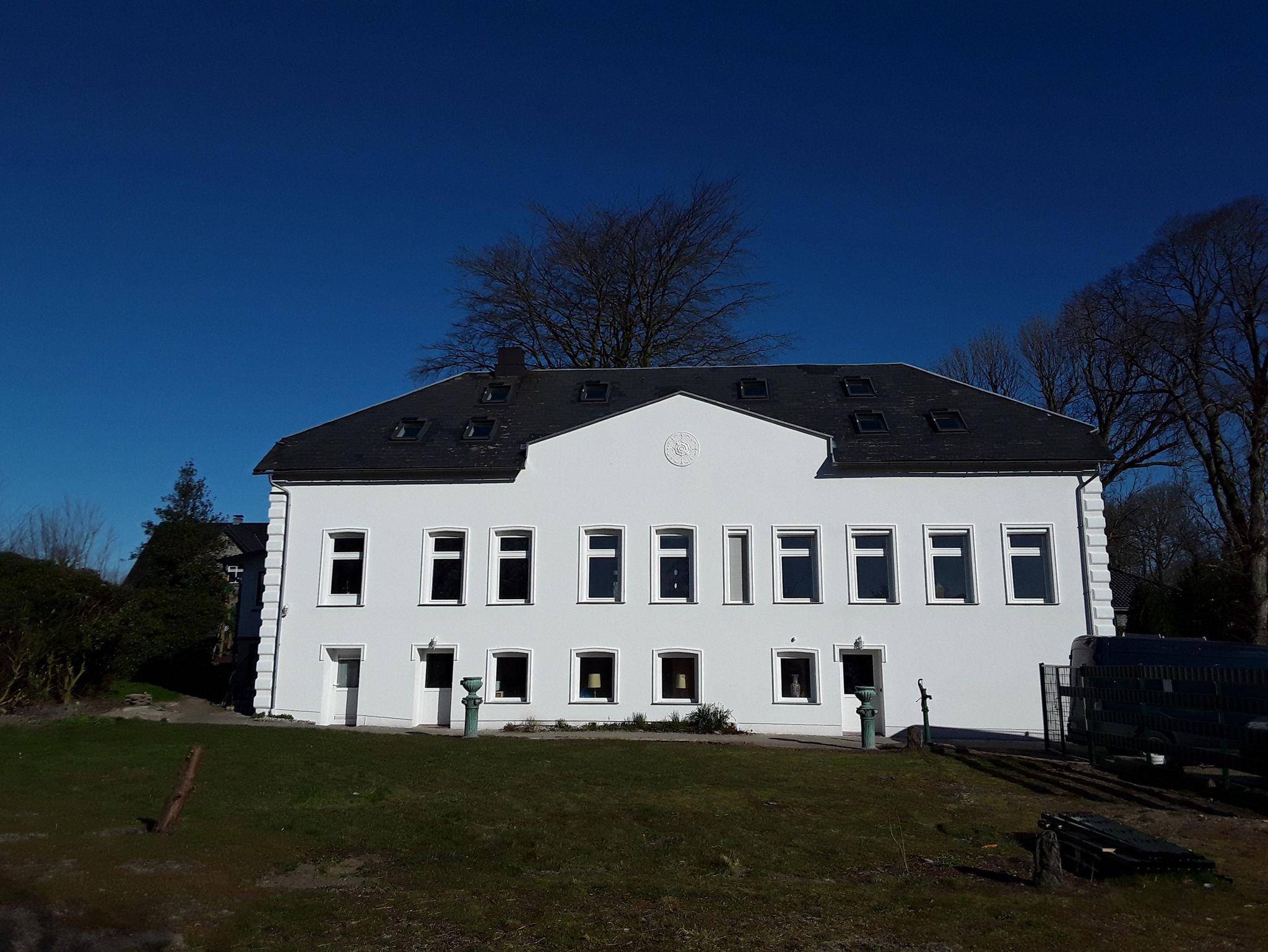 Das historische Herrenhaus war einst mit dem Kloster zum Heiligen Geist in Flensburg verbunden. Nach Abriß und Neuaufbau 1905 wurde das Gebäude 2019-2021 umfangreich saniert. Die drei Etagen haben verschiedene Verwendungen erfahren. Unter dem Dach war ein Großspeicher für Vorräte und die ehemalige Dienstboten-Treppe für das Hauspersonal existiert ebenfalls noch. Heute wird es privat bewohnt und aufgrund der umfangreichen Flächen befinden sich im EG zwei Ferienwohnungen. Ein Viertel Hektar Grundstück, gänzlich eingezäunt, mit vier Parkplätzen, abseits von Schnellstraßen und Lärm, lassen auf Erholung im Grünen hoffen. Zur phonetischen Komplettierung zwitschern morgens und abends zig Vögel im kleinen Rododenron-Kletterwald.