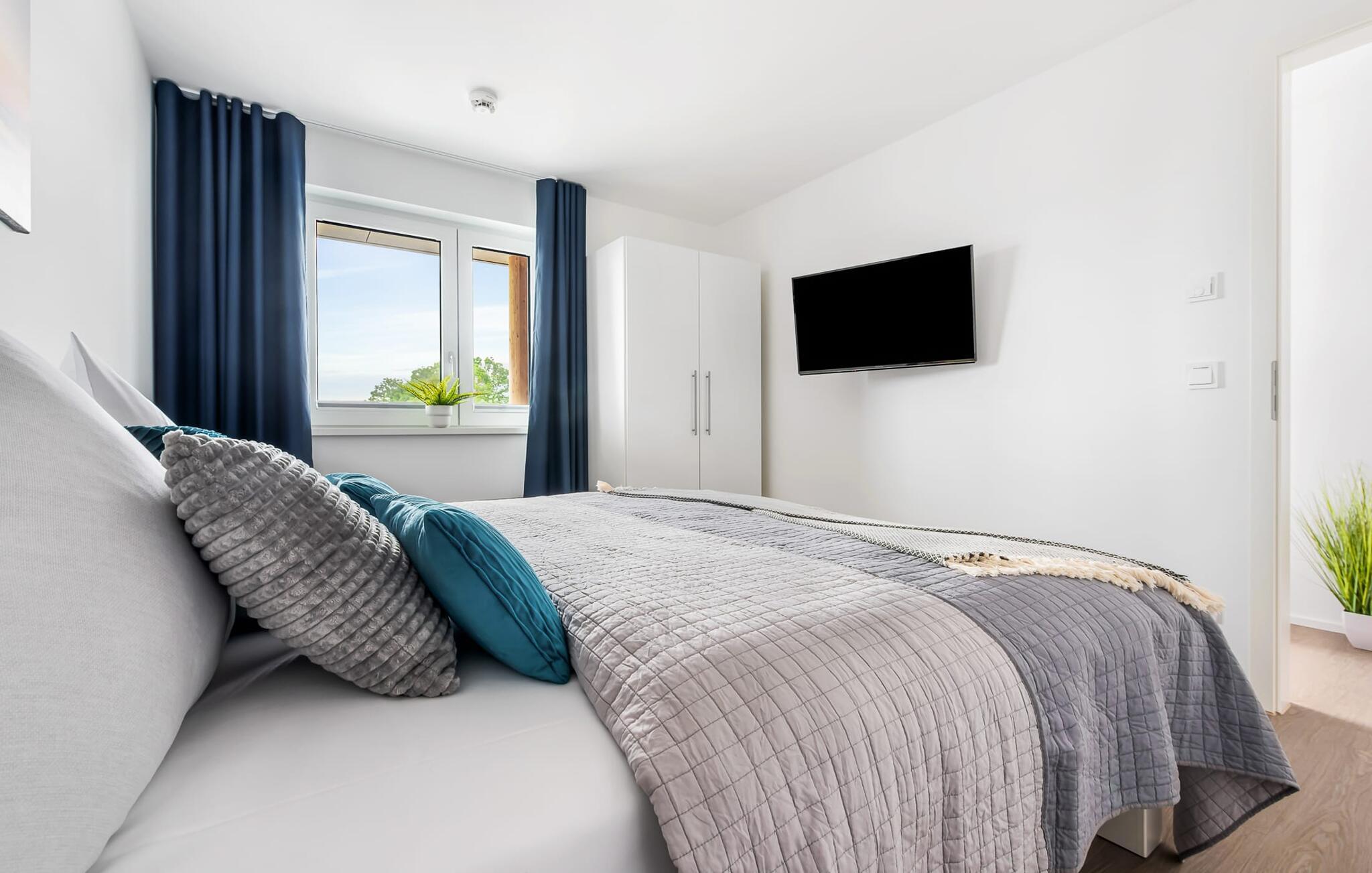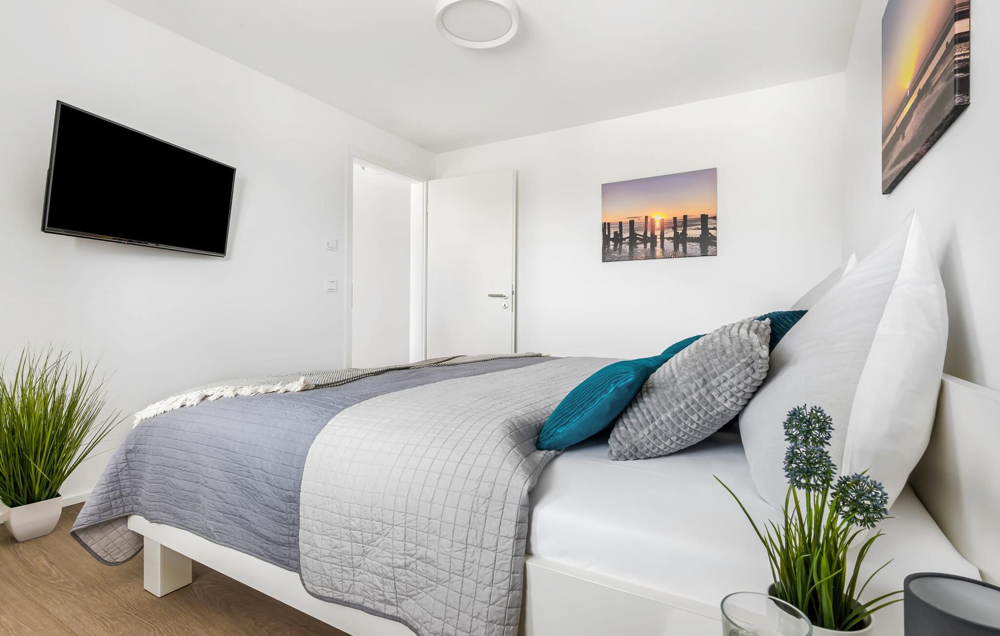 Im ebenfalls gemütlichen Schlafzimmer erwartet euch ein bequemes Doppelbett, das für erholsamen Schlaf sorgt und ein zweiter Fernseher, der für Abwechslung zum Wasserprogramm sorgt.