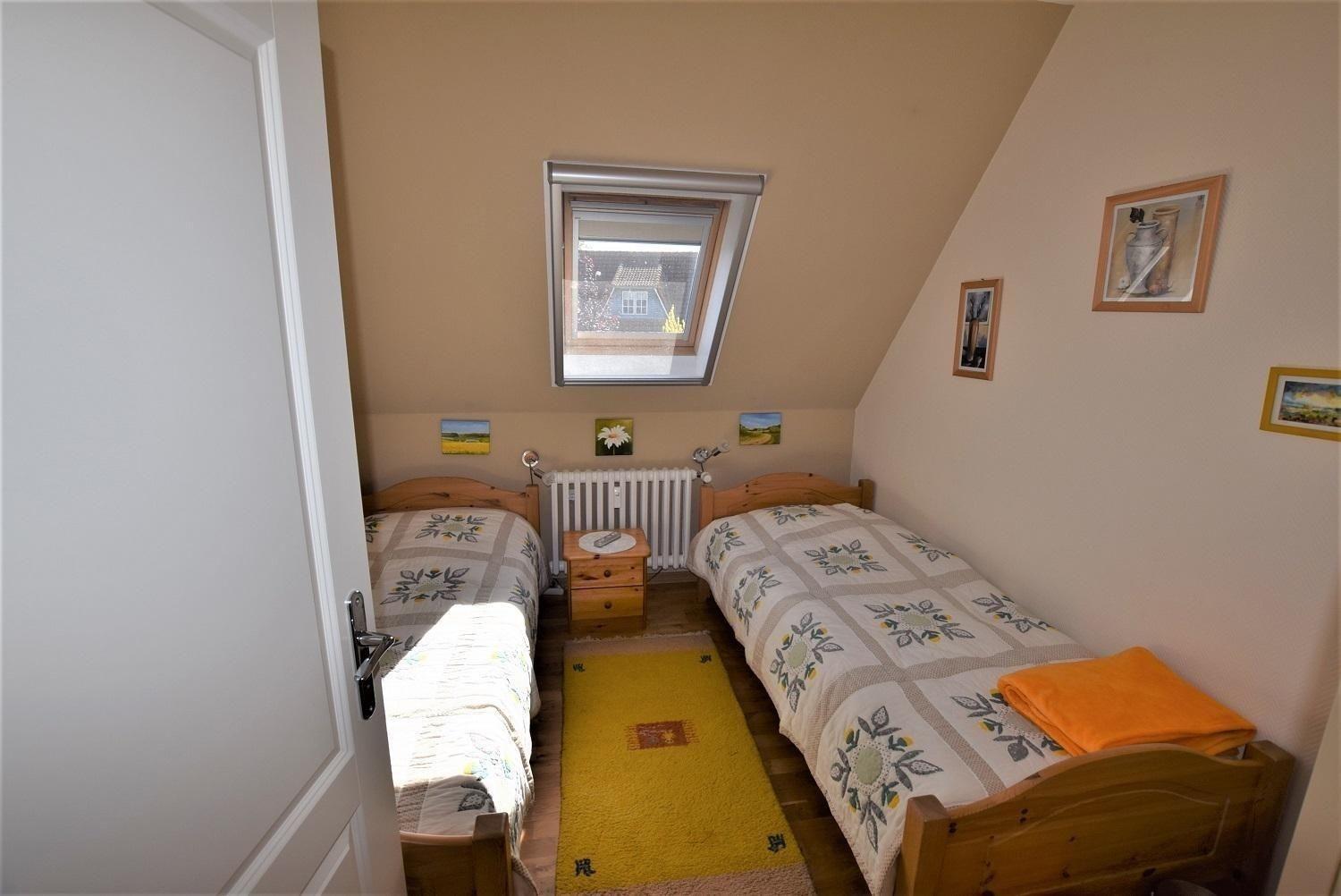 Das Ferienhaus Gabriele erstreckt sich über 78 qm und bietet Platz für bis zu 4 Personen. Auf zwei Ebenen finden sich drei Zimmer, darunter ein gemütliches Wohnzimmer, das mit einem TV-Flachbildschirm, einer Stereoanlage und einem DVD-Player ausgestattet ist. Die Küche im Erdgeschoss verfügt über einen Herd, Backofen, Toaster, Mikrowelle, Geschirrspüler und Kühlschrank sowie ein komplettes Inventar. Ein Gäste-WC ist ebenfalls vorhanden. Im Schlafzimmer steht ein Doppelbett und ein zweiter TV-Flachbildschirm, während ein separater Schlafraum mit zwei Einzelbetten ausgestattet ist. Das Schlafzimmer bietet Zugang zu einem kleinen Balkon mit Blick auf den Binnensee. Handtücher, Bettwäsche und Geschirrtücher sind im Preis enthalten. Eine Waschmaschine kann gegen eine Gebühr genutzt werden. Zudem sind maximal zwei kleine Hunde erlaubt und es stehen zwei Parkplätze am Haus zur Verfügung.