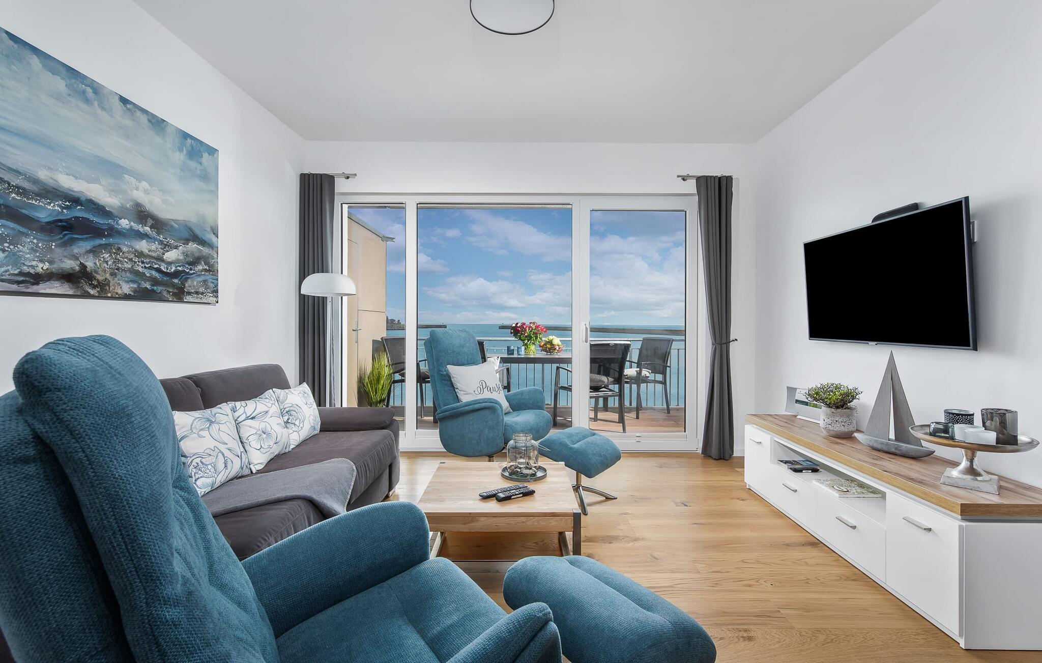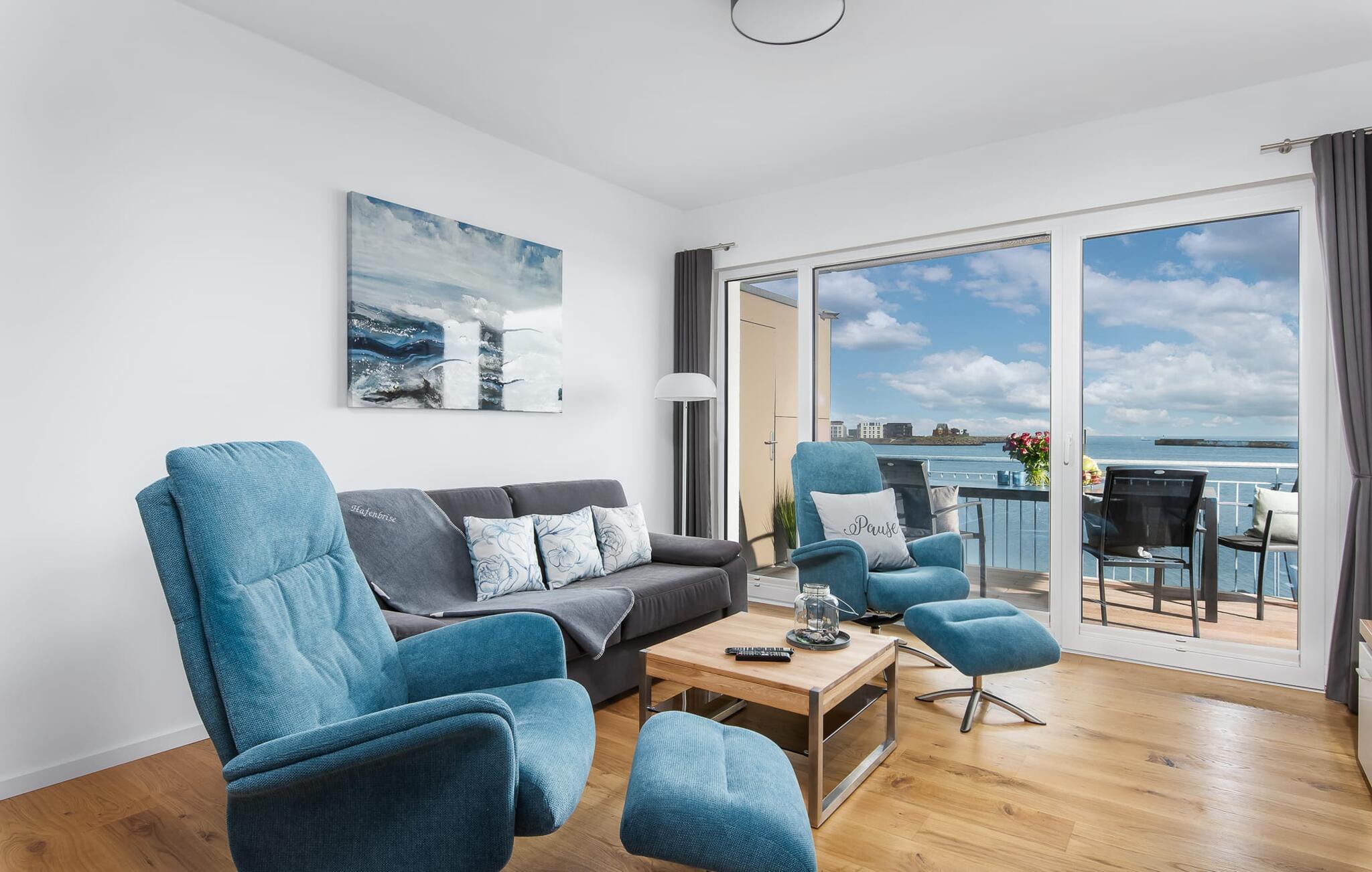 Moderne Ferienwohnung Hafenbrise in Olpenitz mit direktem Ostseeblick und Strandnähe.