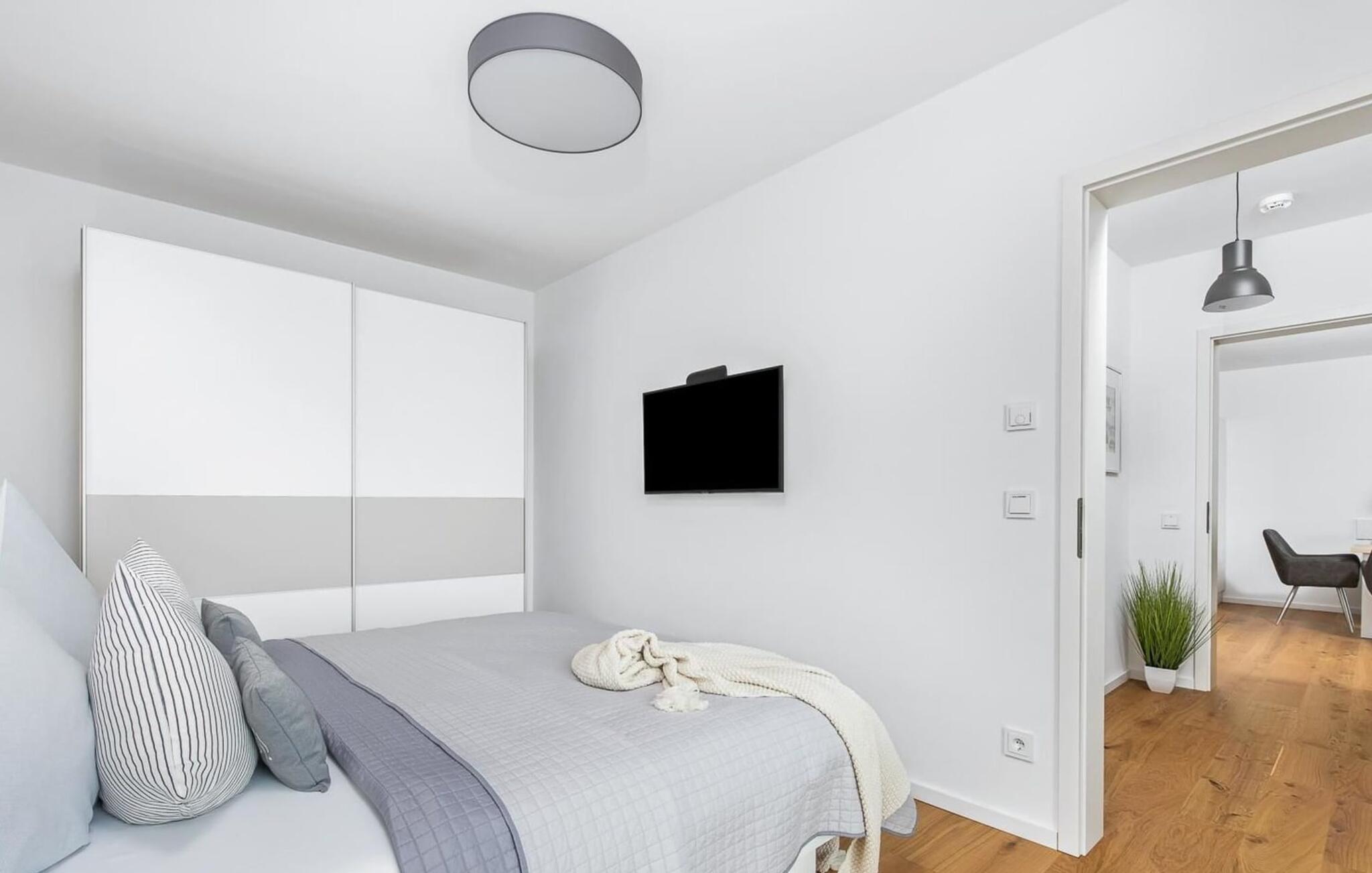 Von den zwei Schlafzimmern ist eines mit einem Fernseher bestückt. In beiden Schlafzimmern findet ihr luxuriöse Doppelbetten, die einen tiefen und erholsamen Schlaf garantieren.