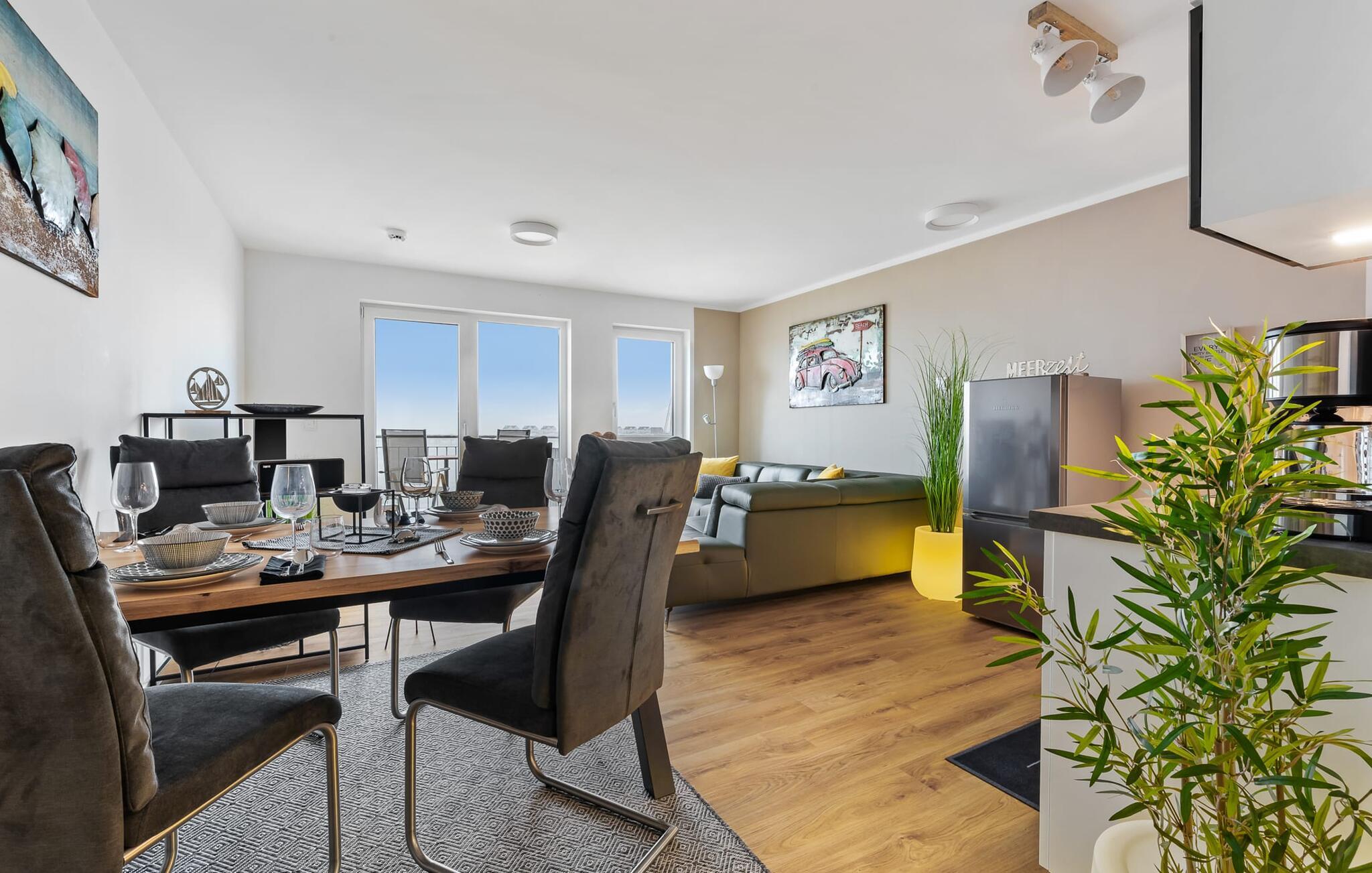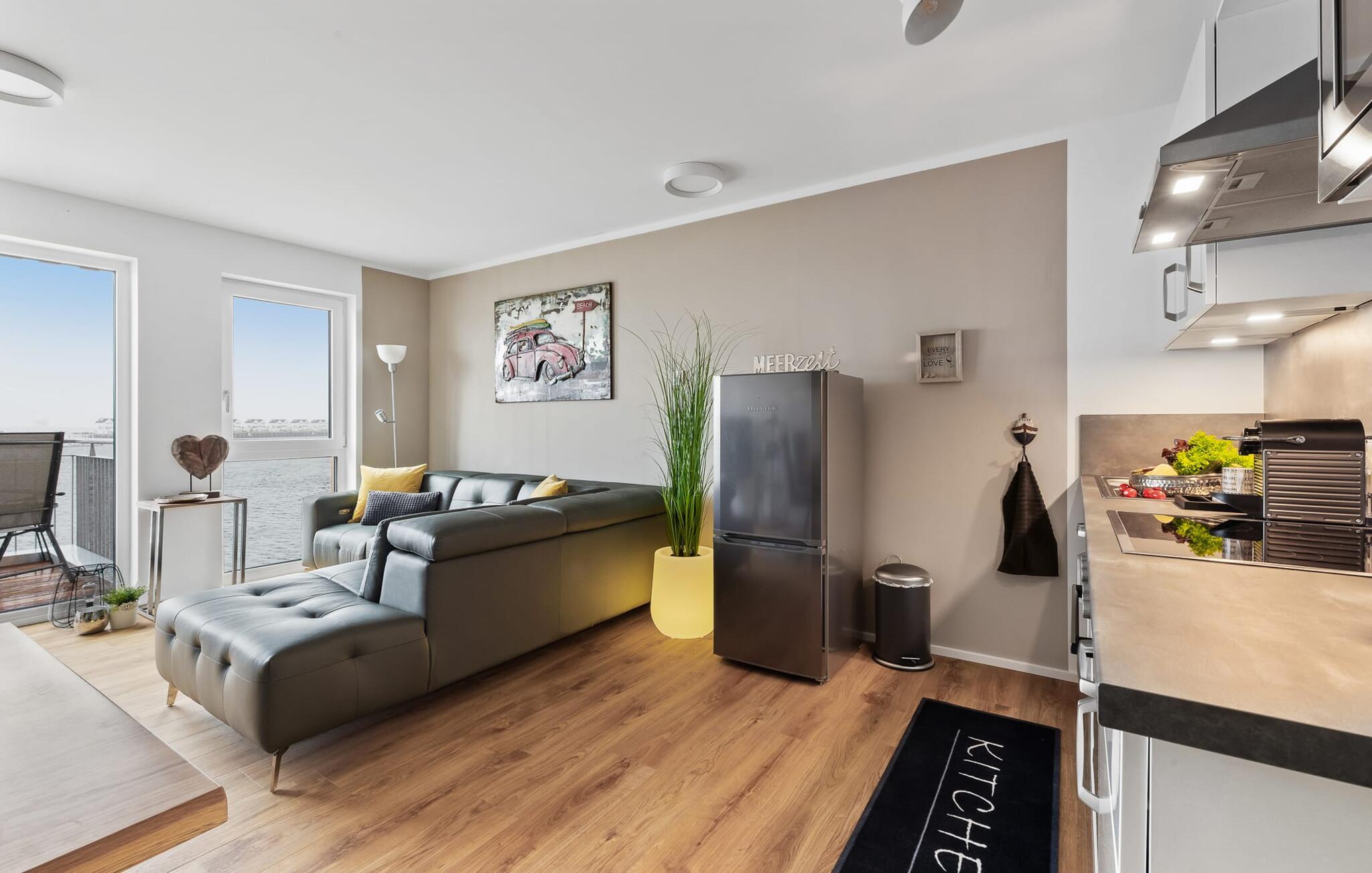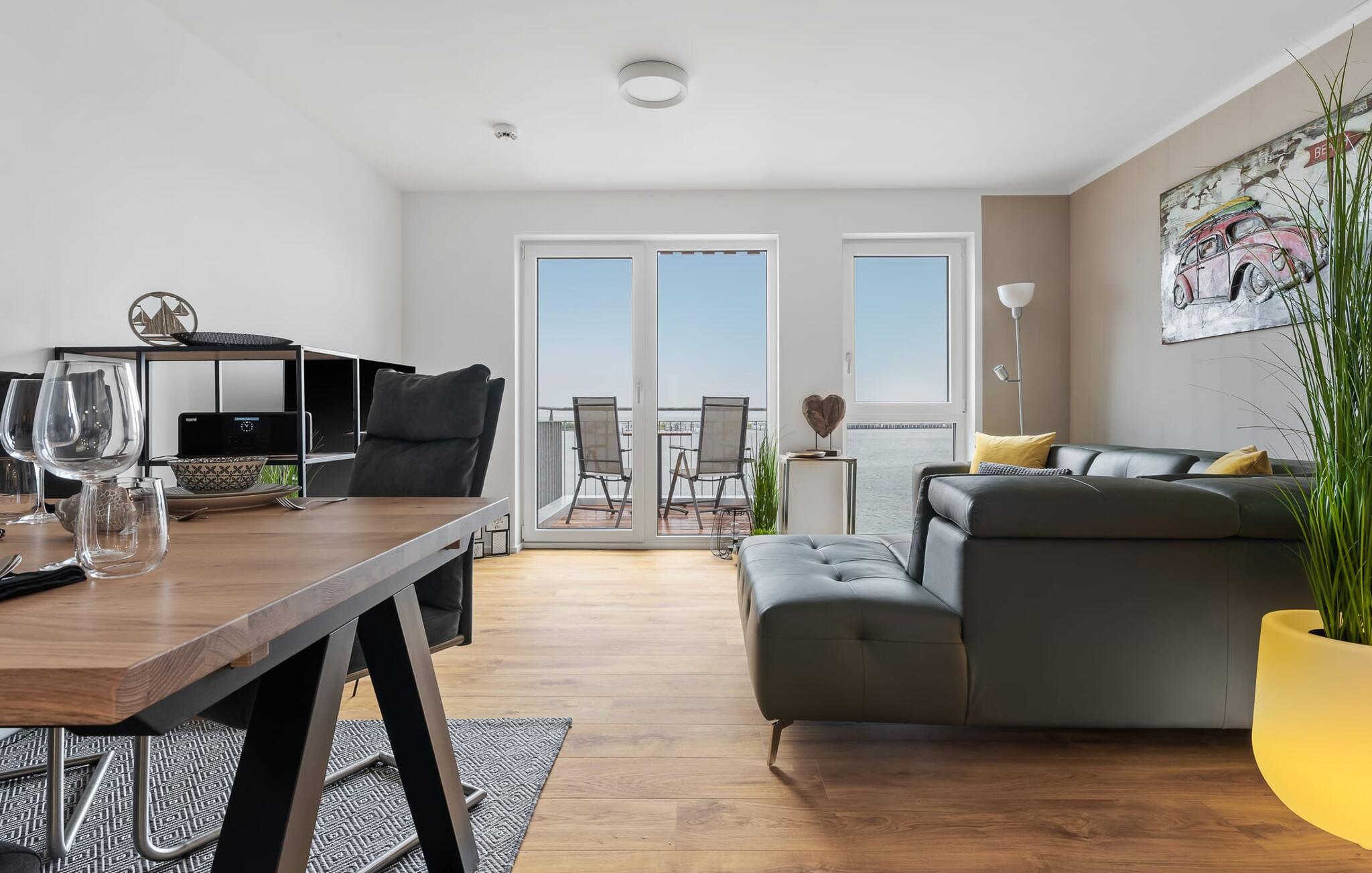 Moderne Ferienwohnung mit Balkon und traumhaftem Hafenblick im OstseeResort Olpenitz.