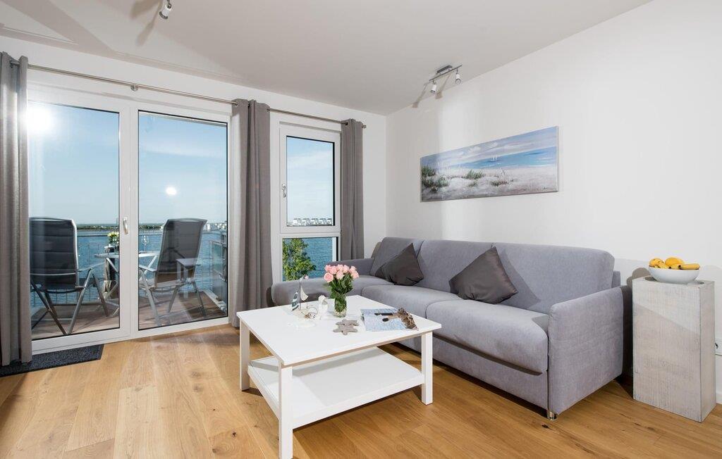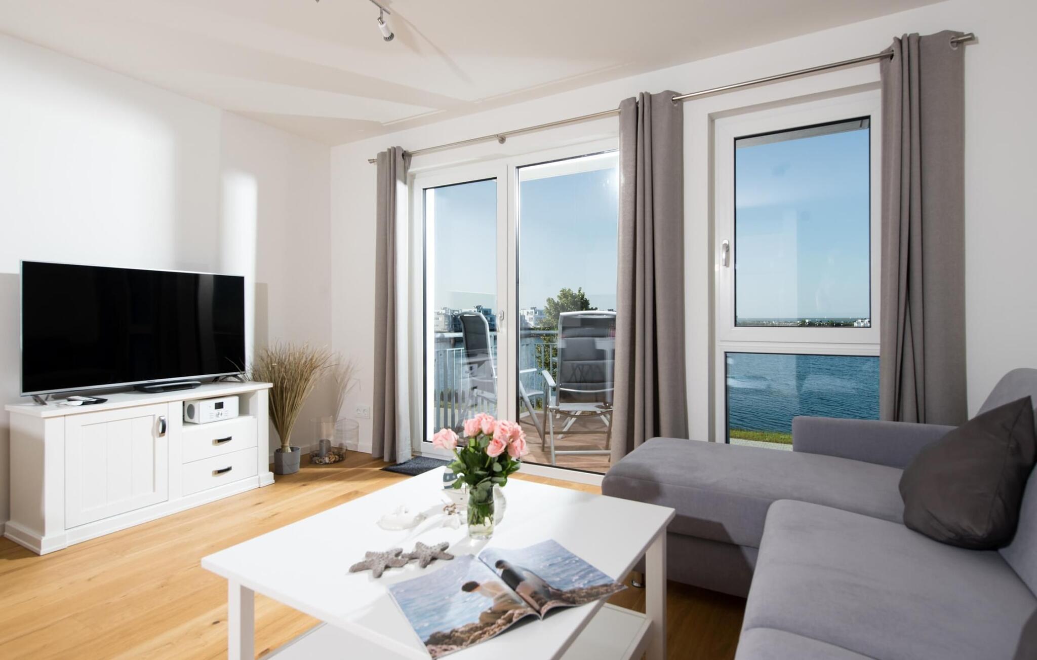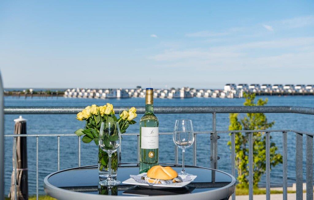 Moderne Ferienwohnung mit Balkon und traumhaftem Ostseeblick am Hafen von Olpenitz.