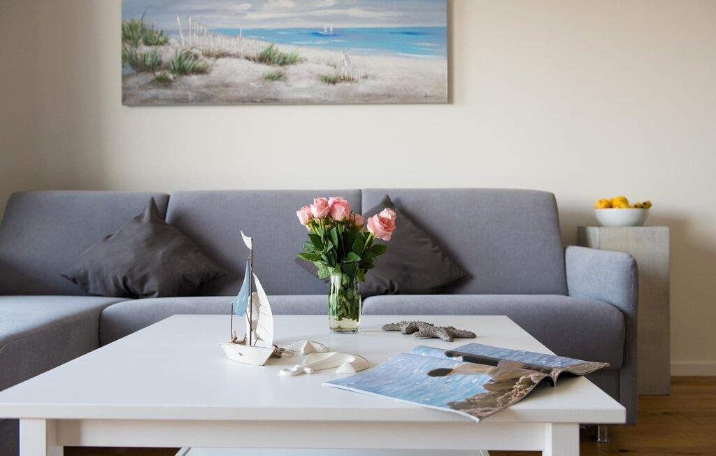 Über den Dingen gelegen lassen sich vorbeifahrende Segelschiffe bei der Ostseeeinfahrt aus dem kompletten Wohn- /Essbereich und dem Balkon aus beobachten. Der Blick fällt auf den Leuchtturm von Schleimünde und die Idylle des Landschaftsschutzgebiets drum herum. Die Hafenpromenade befindet sich direkt unterhalb der Ferienwohnung und lädt zum Flanieren ein. Zusätzliches Entertainment bietet das Telekom Home Entertainment Programm auf dem Flatscreen-TV im Wohnzimmer, welches sich vom gemütlichen Sofa aus genießen lässt.