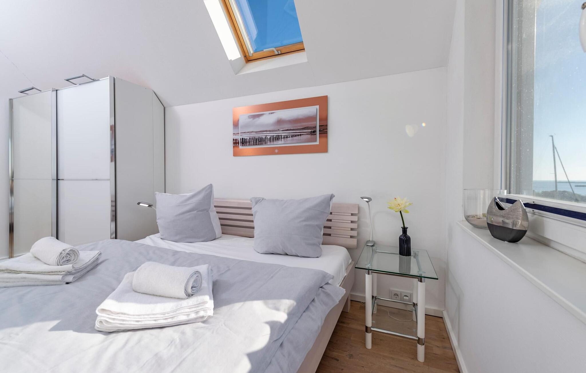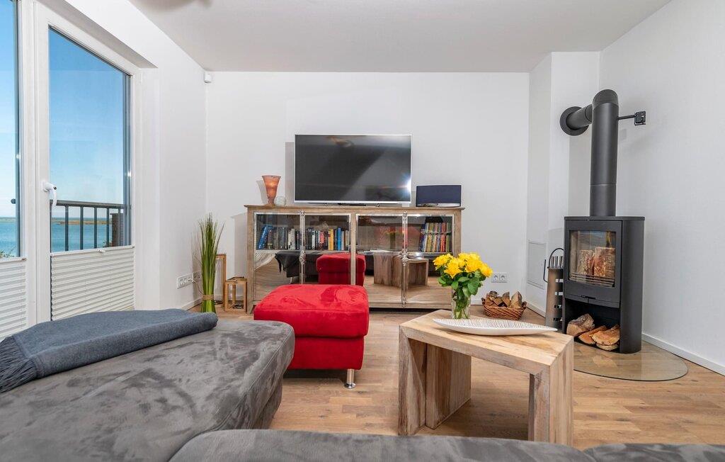 Stilvolle Maisonette-Ferienwohnung mit Kamin und Meerblick im OstseeResort Olpenitz für erholsame Urlaubstage.