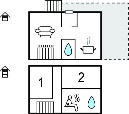 Badezimmer (nr. 2) - WC. Warmes und kaltes Wasser. Dusche