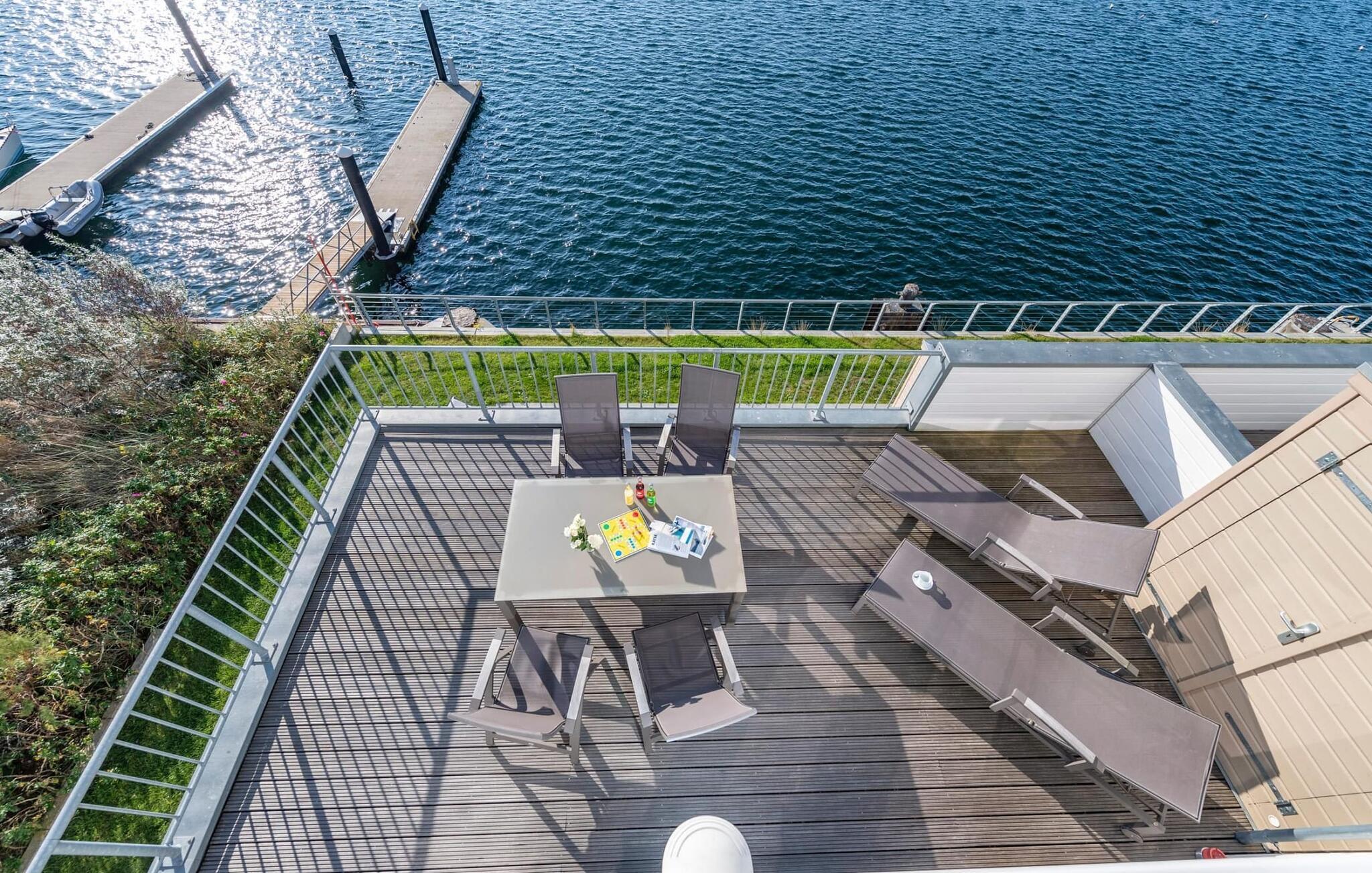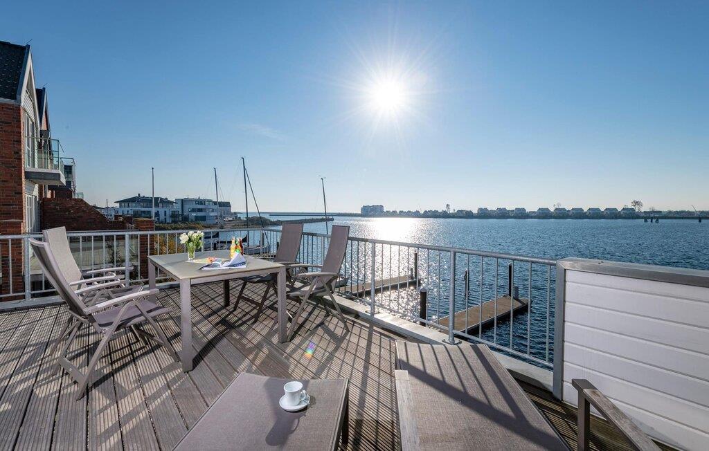 Vollausblick auf den Hafen genossen werden. Dieses unbegrenzte Urlaubsgefühl setzt sich auf der angrenzenden Terrasse mit Ausrichtung Süd-Süd-West fort.