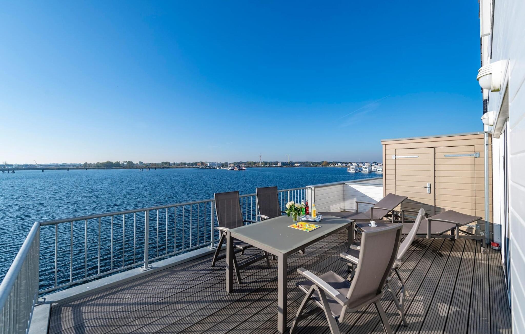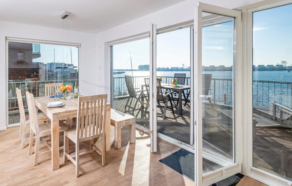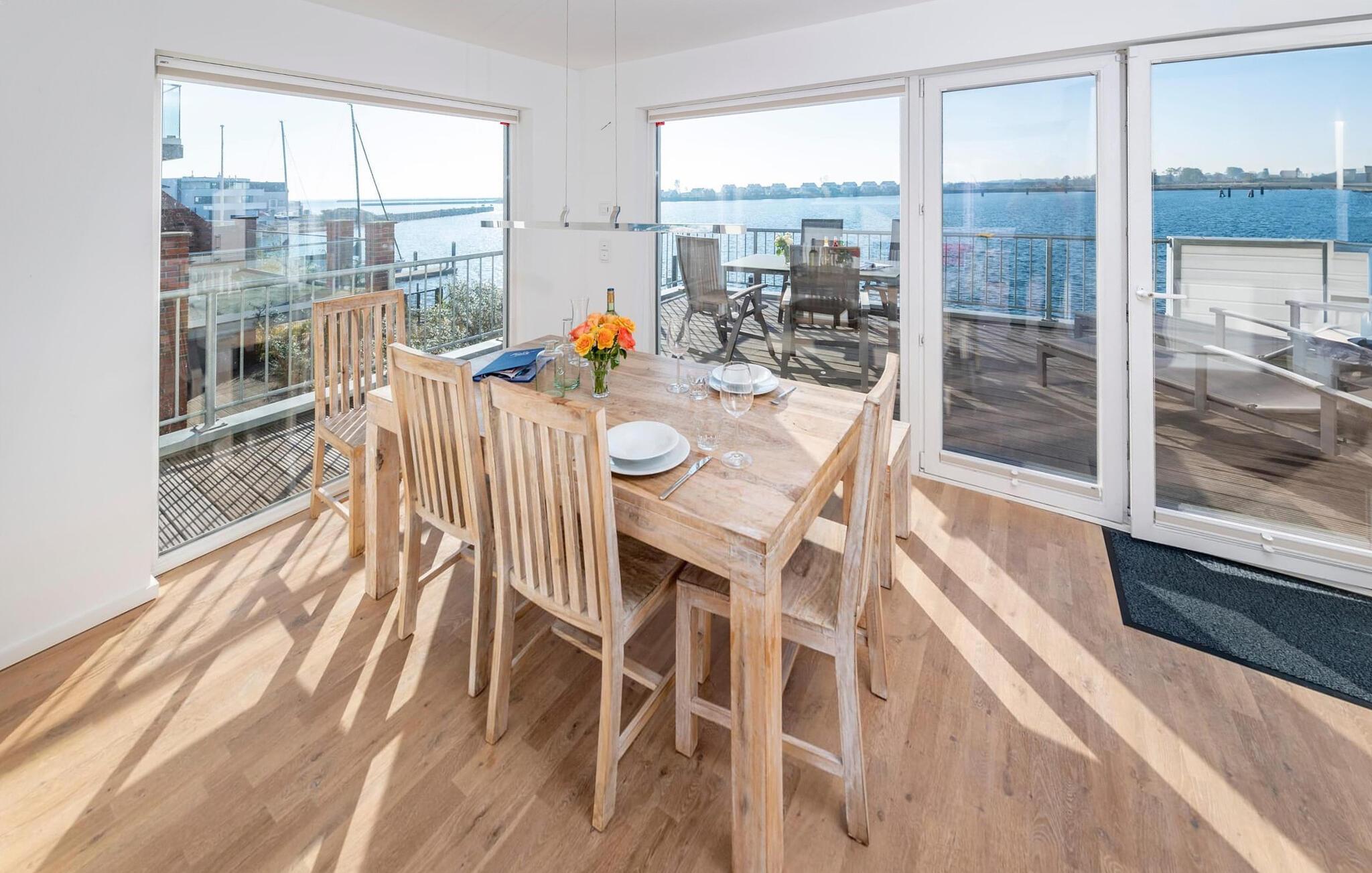 Direkt auf dem alten Kaianleger im Ostseeresort Olpenitz mit Blick auf die Schlei und den Segelhafen des Resorts liegt die Ferienwohnung Hafenkante.