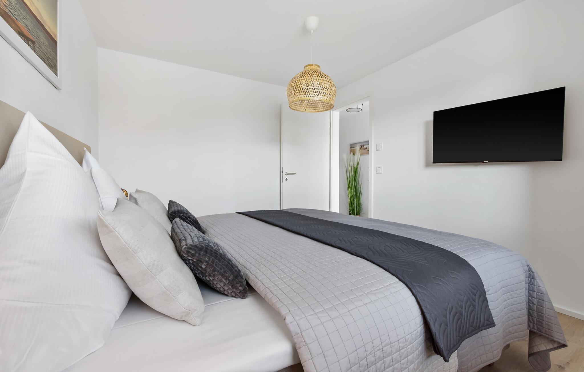 Die Ferienwohnung verfügt über ein Schlafzimmer mit Doppelbett. Hier findet ihr einen weiteren TV.