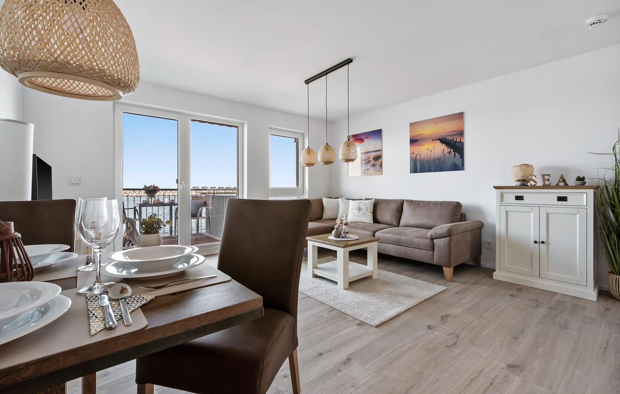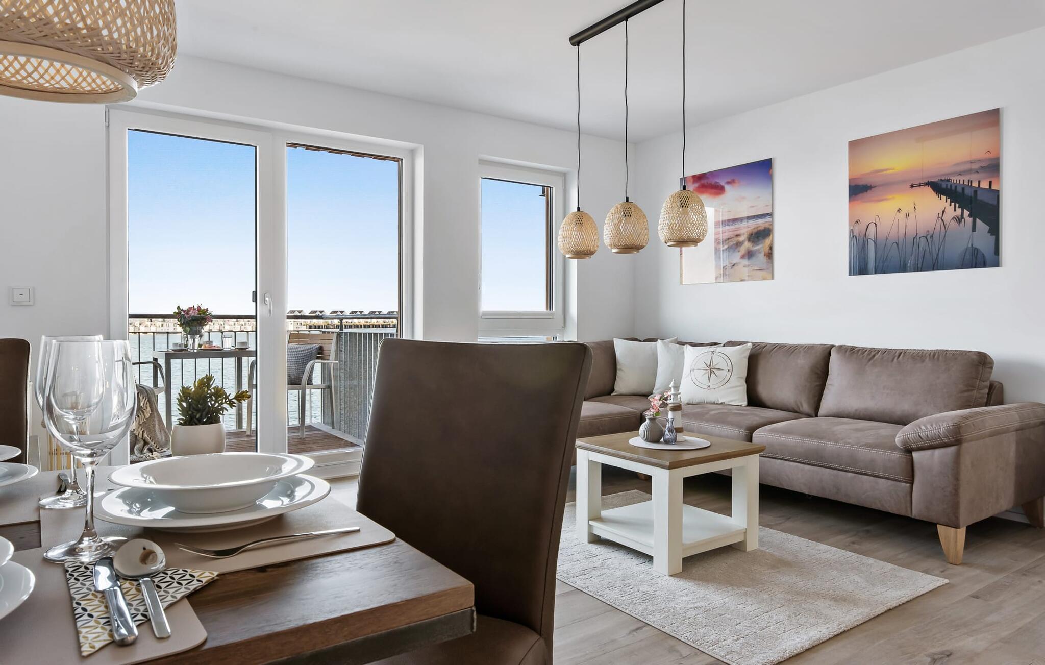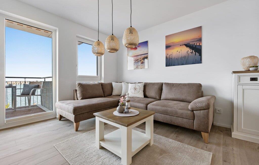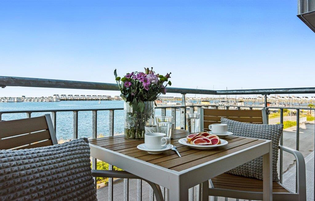 Genießen Sie einen exklusiven Hafenmeerblick in stilvoller Ferienwohnung am OstseeResort Olpenitz.