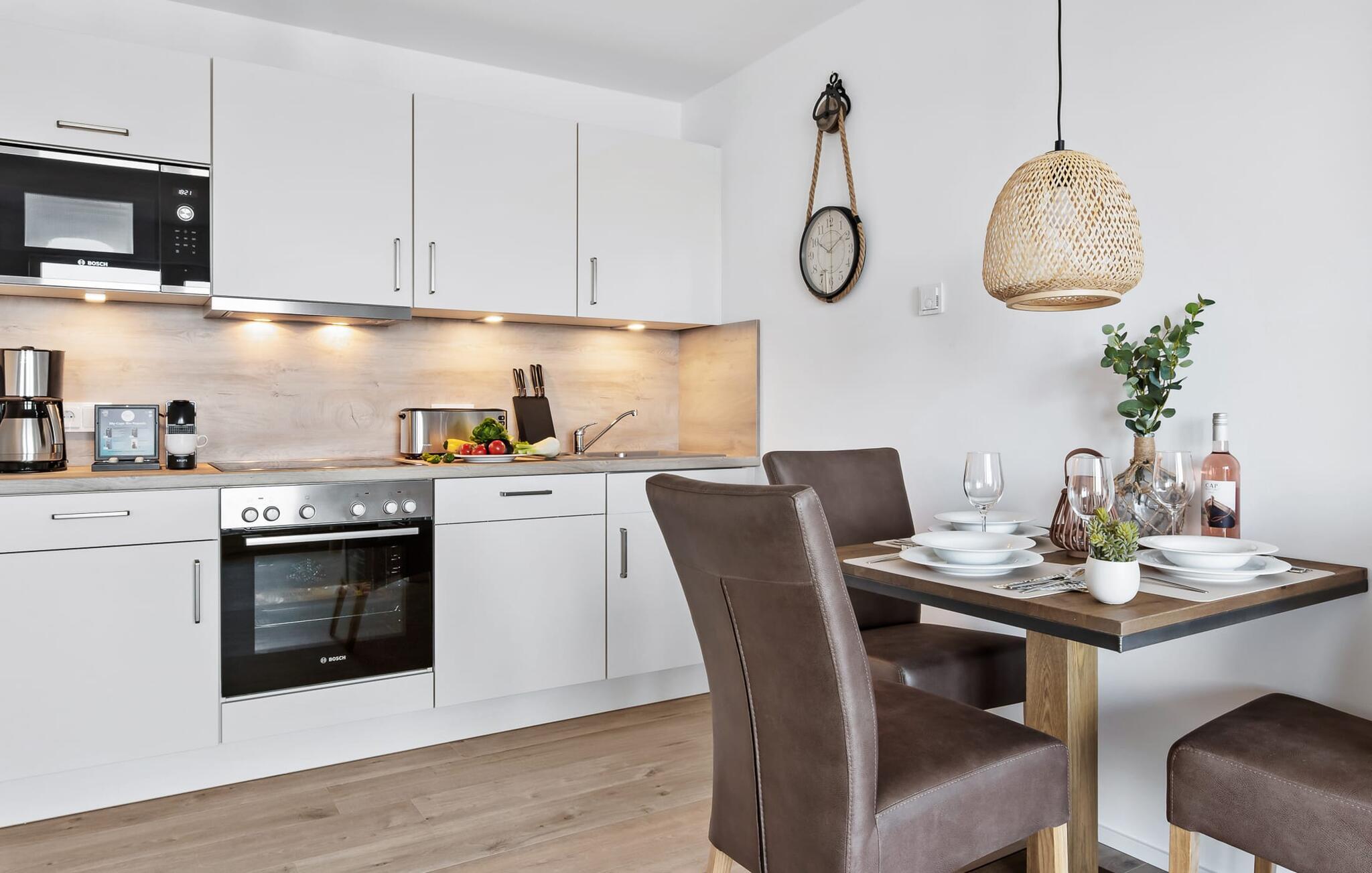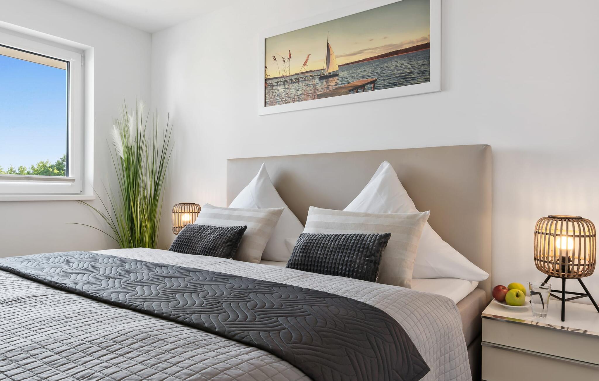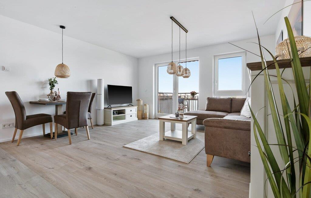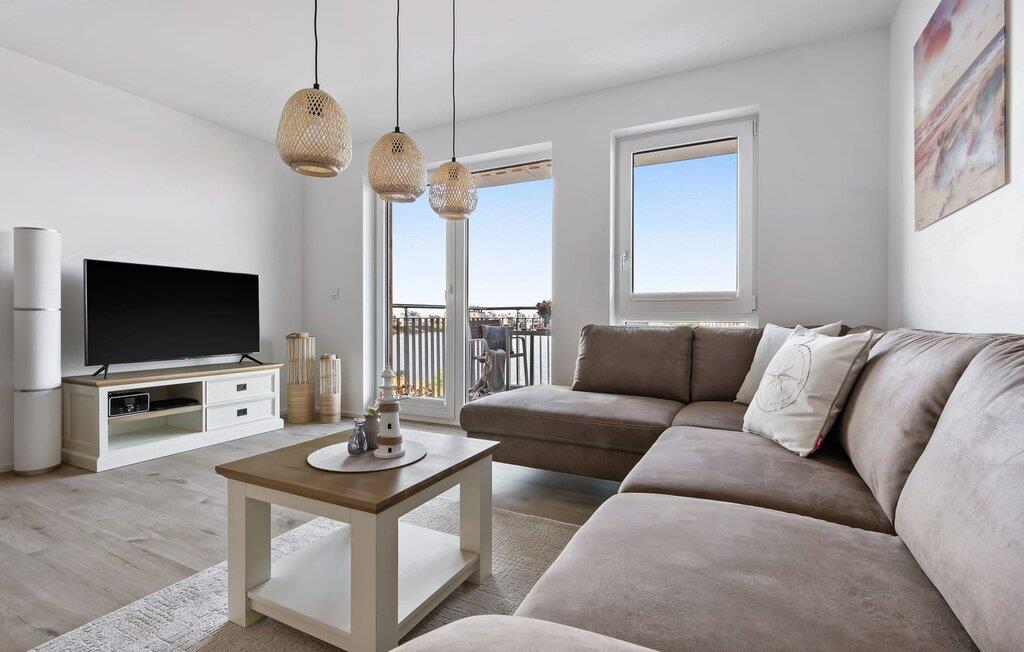 Genießen Sie einen exklusiven Hafenmeerblick in stilvoller Ferienwohnung am OstseeResort Olpenitz.