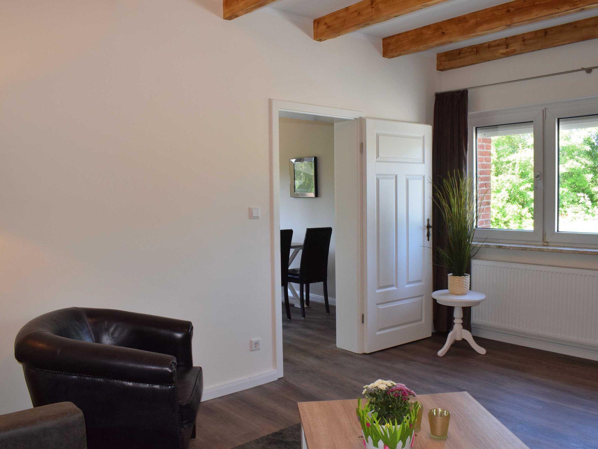 Schönes Feriendomizil in unserem Anbau! Durch einen separaten Eingang betreten unsere Gäste diese schön möblierte Maisonettewohnung. Zu ebener Erde befinden sich ein geräumiges Schlafzimmer und ein Badezimmer mit Dusche/WC. Eine Treppe führt in eine sehr gemütliche Küche und den Essbereich. Das zweite Zimmer ist als Wohnzimmer mit einer Schlafcouch eingerichtet, wo zwei weitere Personen schlafen können. Ein Balkon lädt zum Verweilen oder Essen im Freien ein. Kostenloses Wlan und ein PKW-Stellplatz stehen zur Verfügung. Herzlich Willkommen!