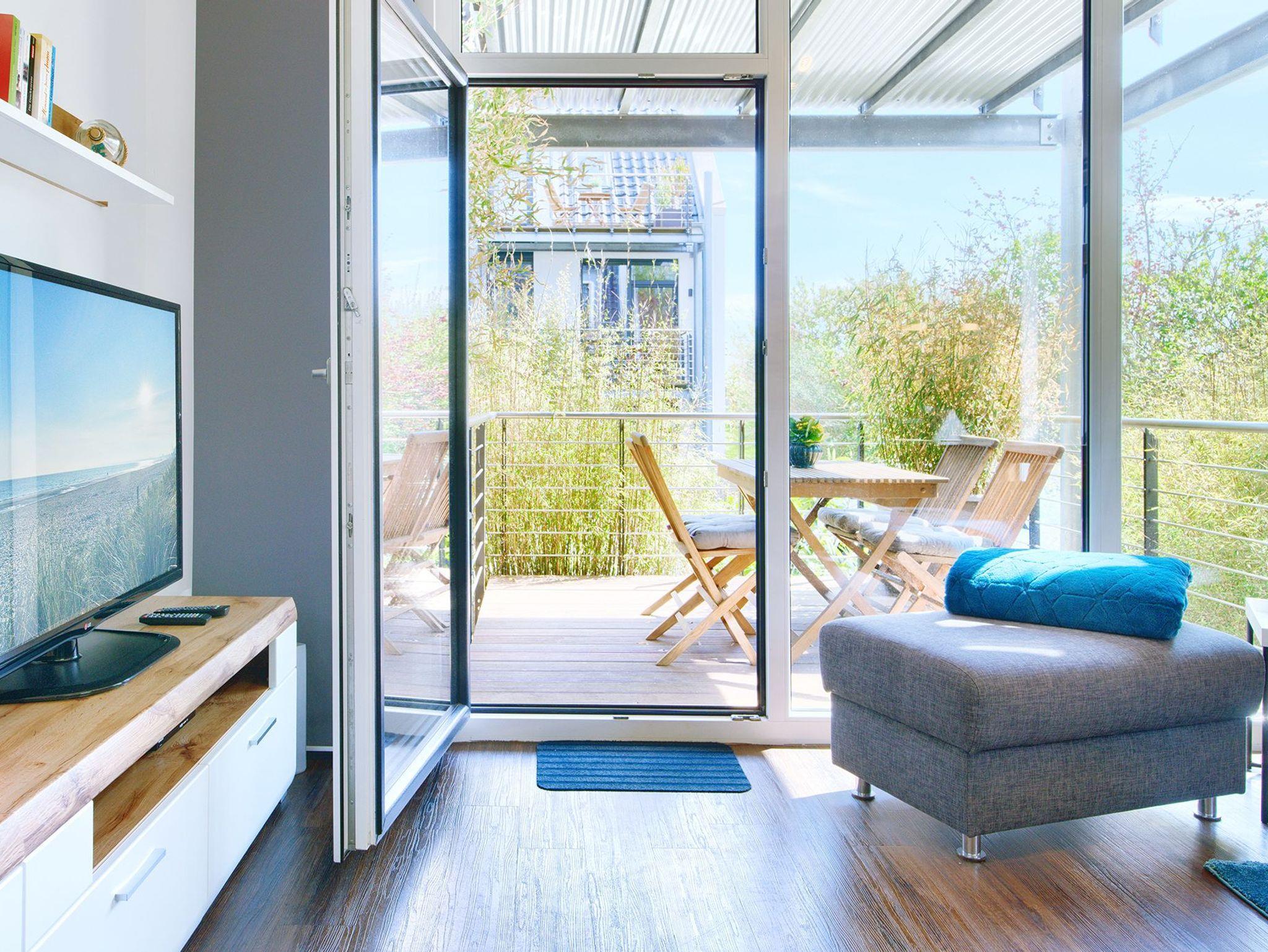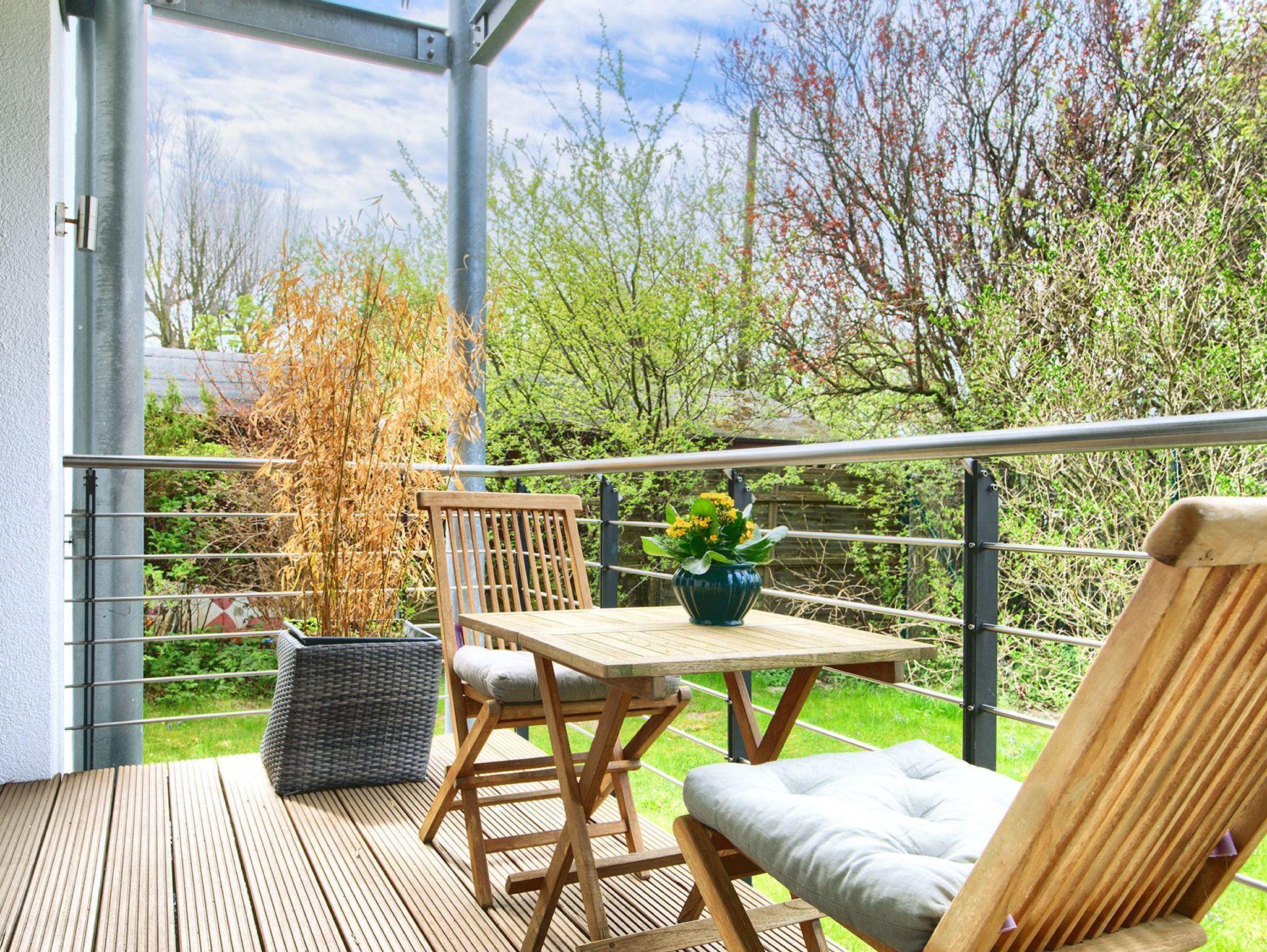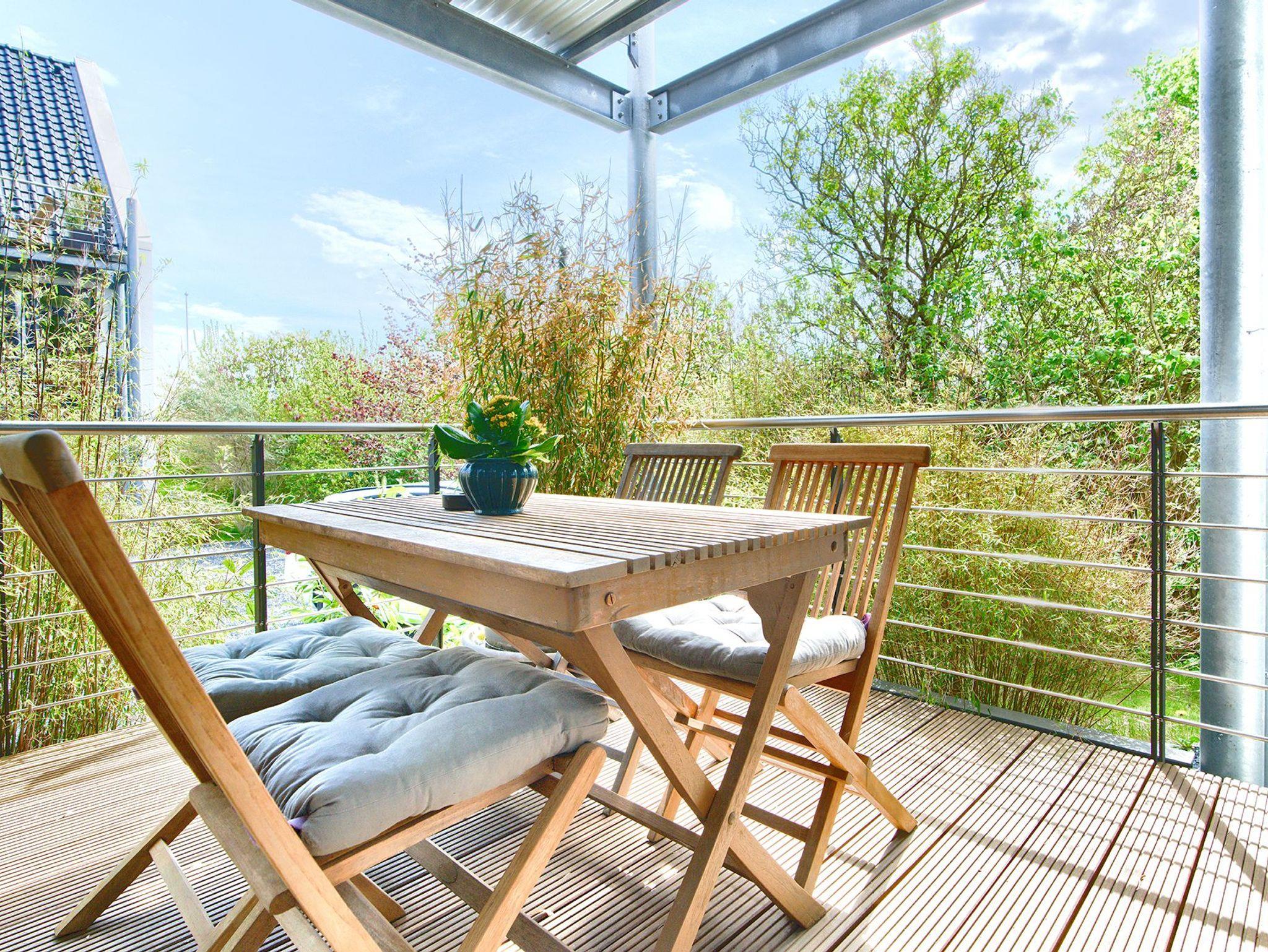 Moderne Ferienwohnung mit zwei Balkonen, nur 60 m vom Strand Haffkrug entfernt, ideal für erholsame Urlaubsmomente.