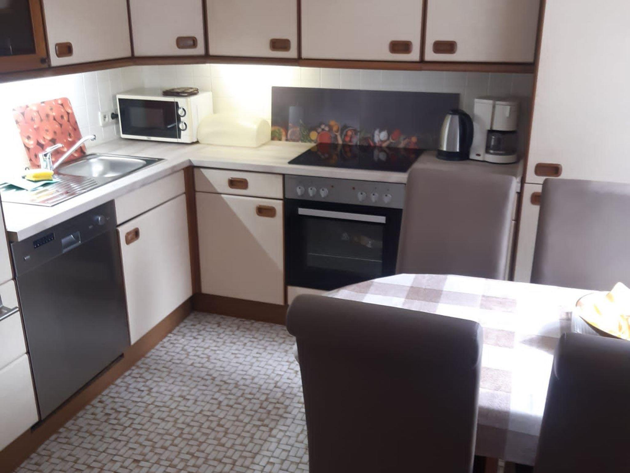 Diese gemütliche Ferienwohnung ist unsere zweitgrößte Wohnung. Sie besteht aus einen großem Flur mit Einbauschränken, zwei Schlafzimmern, einem gemütlichen Wohn-/Schlafzimmer (TV, Radio und Internetzugang), einer voll ausgestatteten Essküche nebst Geschirrspüler sowie Bad mit Dusche und WC, sowie Parkplatz. Wlan steht zur Verfügung. Die Ferienwohnung ist behindertenfreundlich: es kann allerdings nur eine behinderte Person mitreisen!