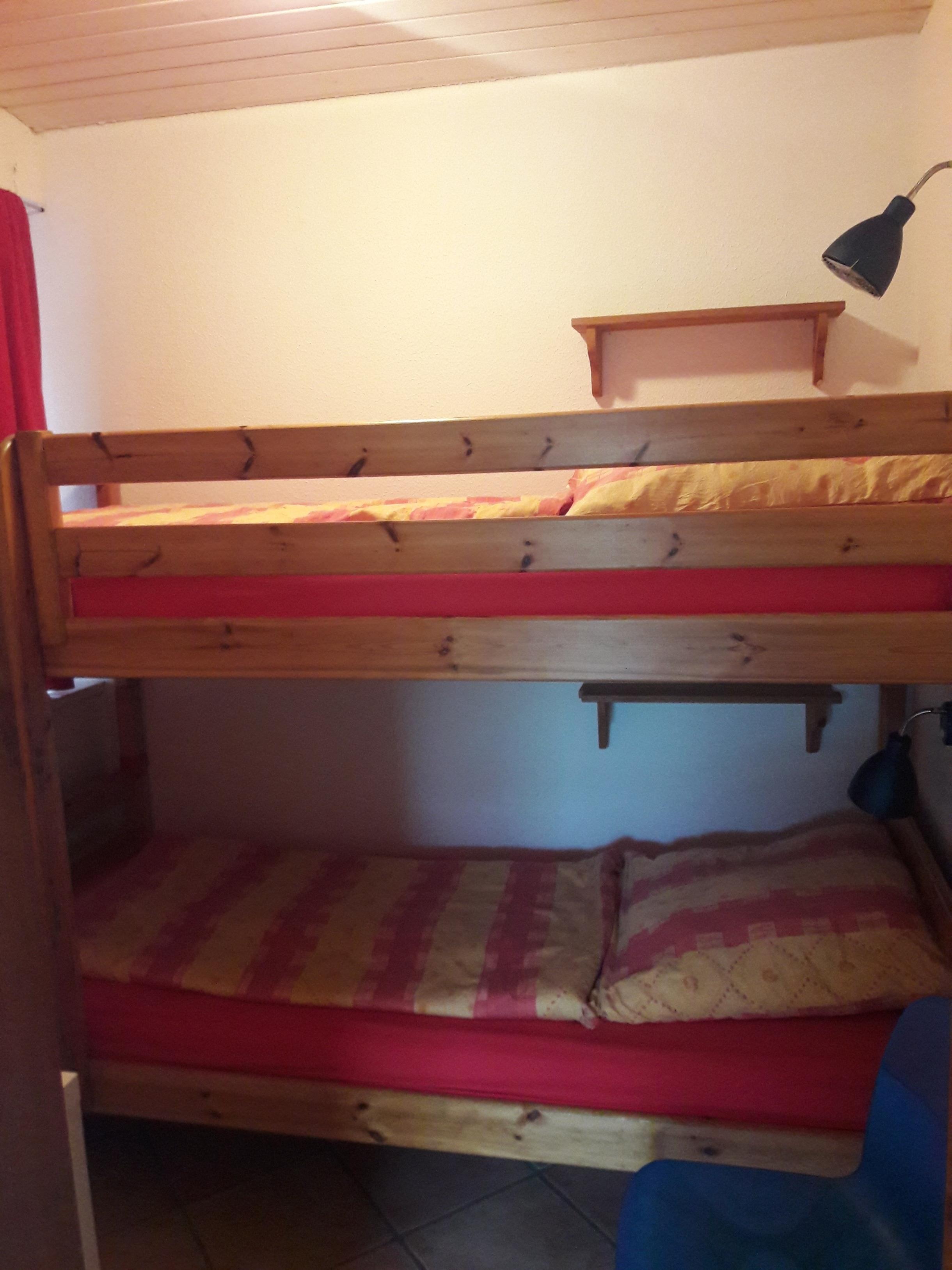 1 Kinderzimmer, 1 Schlafzimmer, 1 Wohnraum, Pantry Küche, Dusche, WC, Kabel-TV und eine Terrasse.