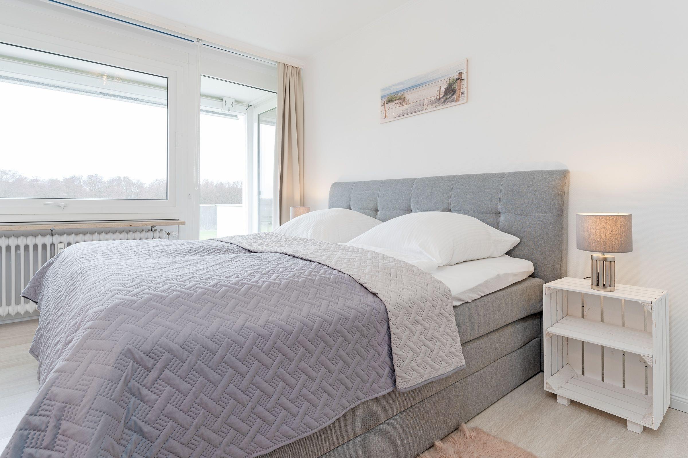 Nur gut 50 Meter vom Ostseestrand entfernt präsentiert sich das Feriendomizil Strandstern im Appartementhaus Nautica. Sowohl das große Sofa vor dem TV-Gerät als auch die gemütliche Essecke am Fenster laden zum Verweilen ein. Hier haben Sie auch Zutritt auf den möblierten Balkon mit West-Ausrichtung und einem Weitblick ins Grüne. Die kleine Kochnische mit Geschirrspüler ist funktional eingerichtet. Nach einem schönen Tag am Meer können Sie für die Nacht das Sofa in einen Schlafplatz (ca. 150x200 cm) verwandeln. Zudem steht im separaten Schlafzimmer ein Doppelboxspringbett (180x200 cm) bereit. Das innenliegende Duschbad ist hell gefliest.