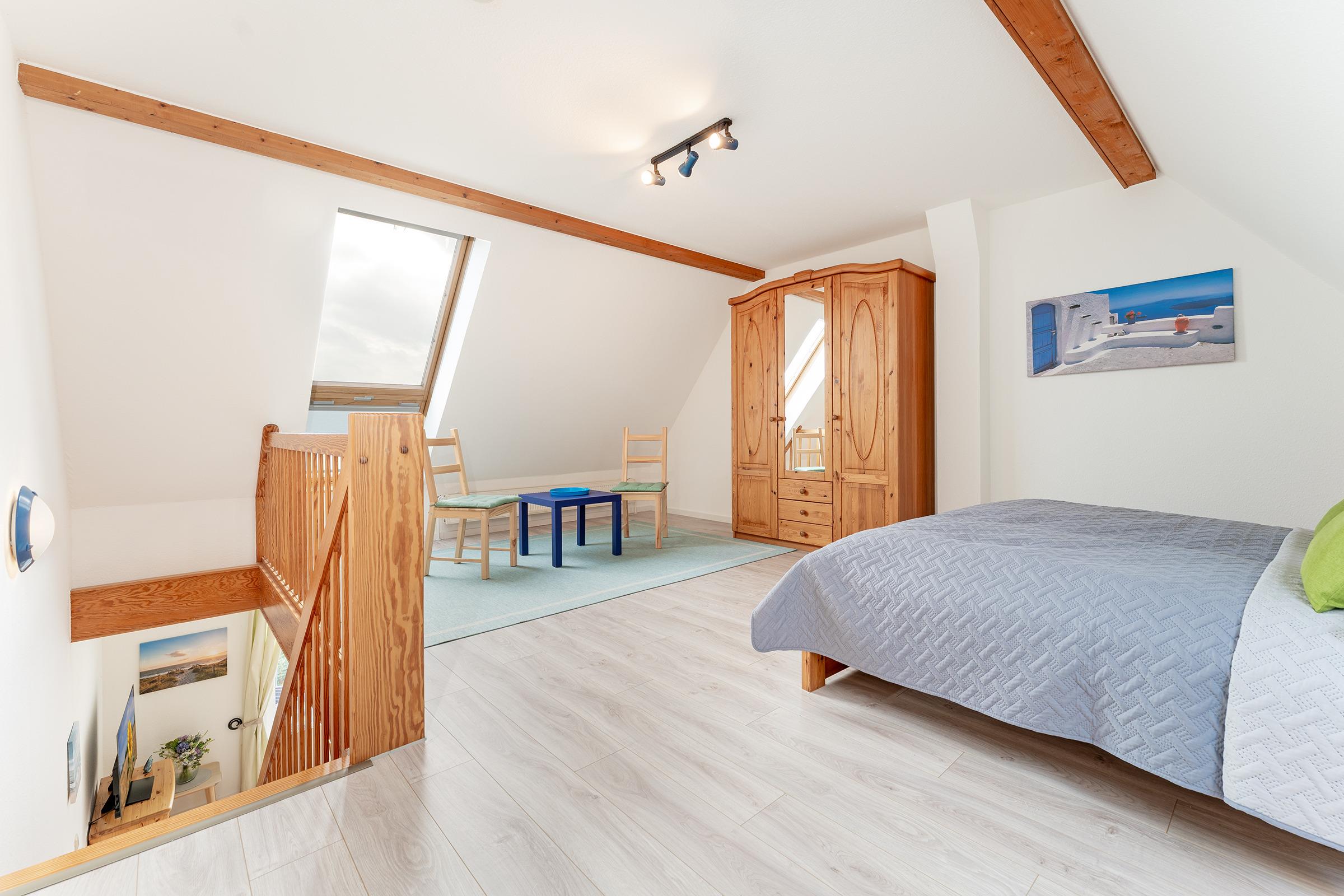 Schlafzimmer 1: 1 Doppelbett (2x 80x200 cm), Kleiderschrank, kein Platz für Babybett vorhanden