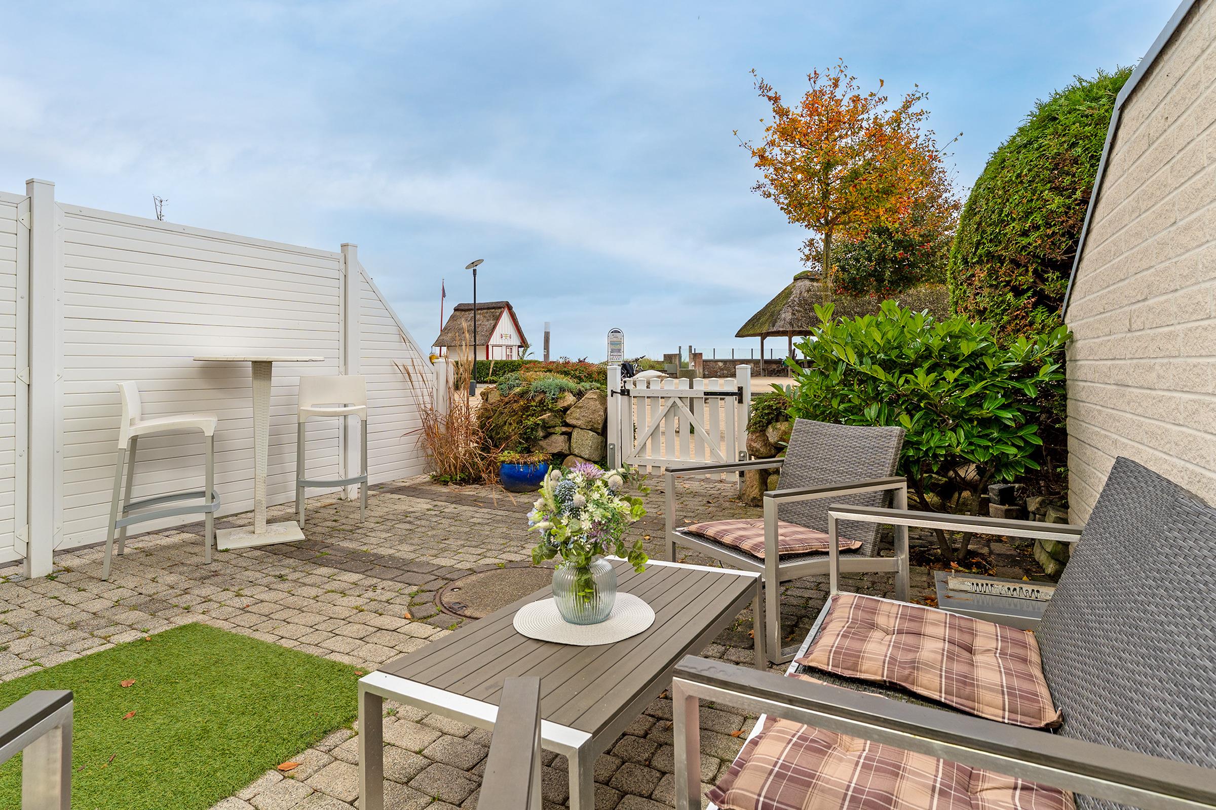 Zentrale 2-Zimmer-Ferienwohnung in Haffkrug mit 47 m² Wohnfläche, Terrasse und Meerblick für bis zu 4 Personen.