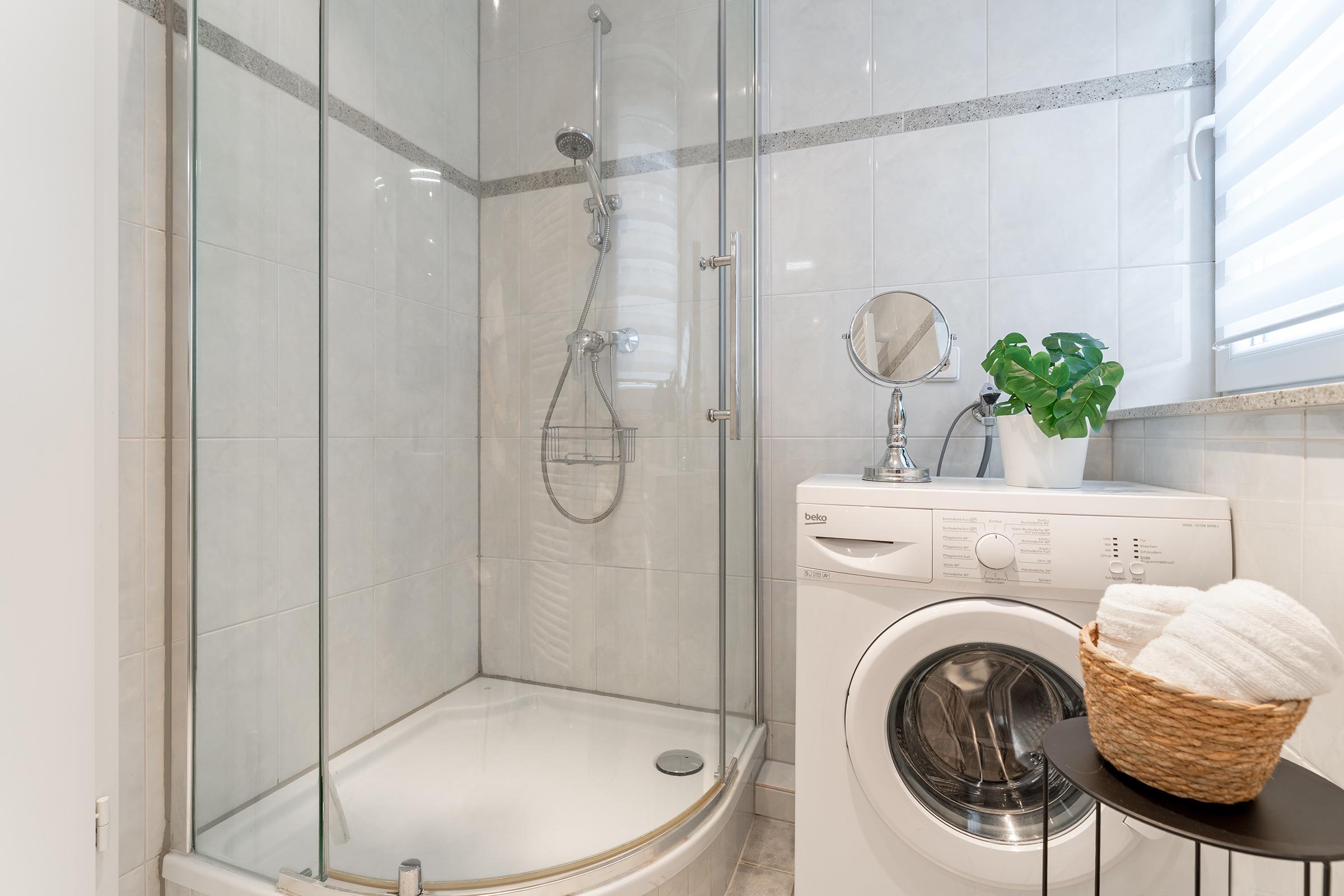 Ein PKW-Außenstellplatz ist für Sie reserviert. Für Ihre mitgebrachten Fahrräder steht ein gemeinschaftlicher Fahrradabstellraum zur Verfügung. Zum Waschen Ihrer Urlaubsgarderobe steht Ihnen eine Waschmaschine zur Verfügung. WLAN ist inklusive.