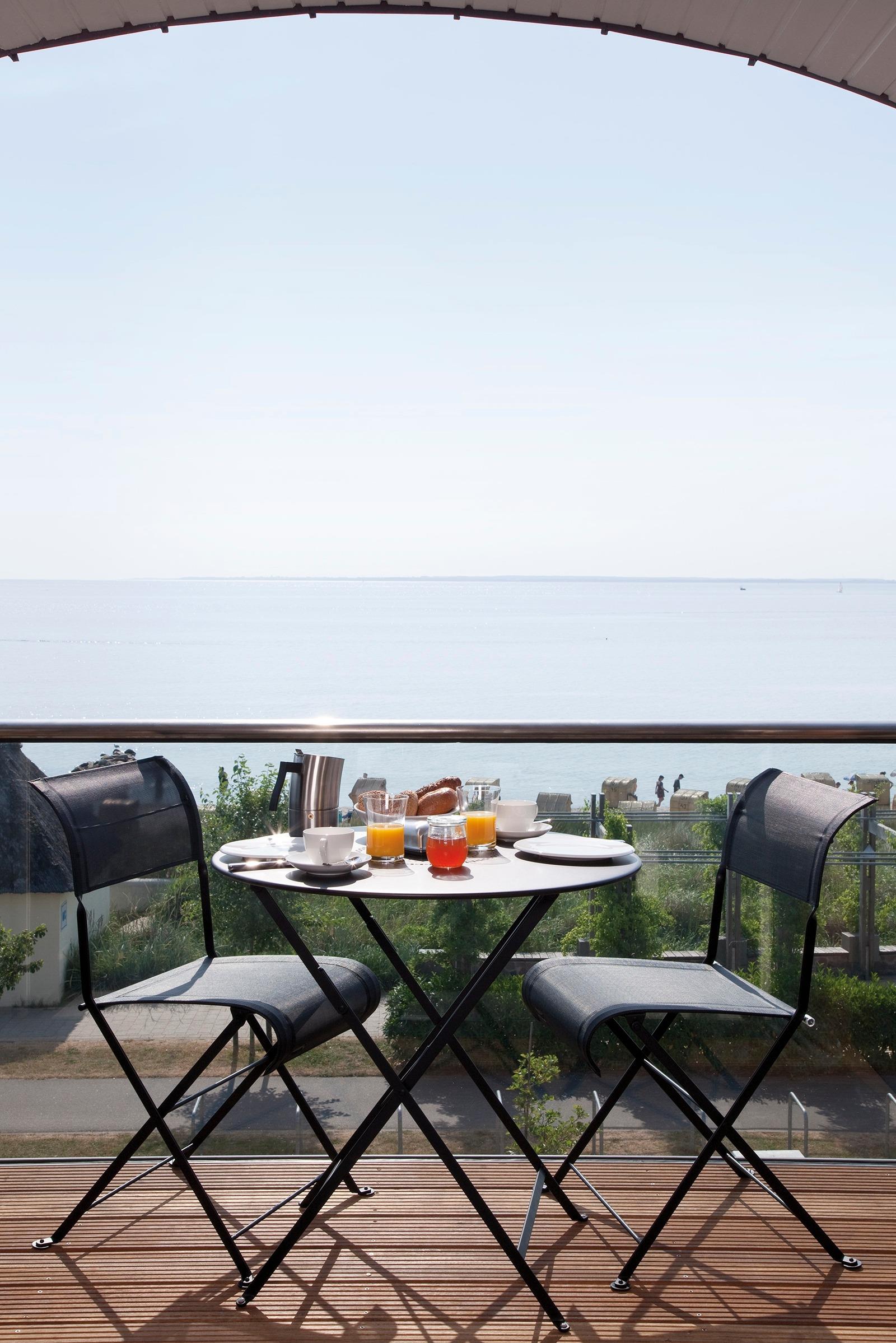 Das offene Entree ist ein erstes Versprechen. Das großzügige Apartment besticht mit einzigartigem Wohlfühlambiente. Dabei ist die Lage der zwei Balkone von besonderem Interesse: Wer gerne unter maximaler Einstrahlung sonnenbaden möchte, findet auf dem Südbalkon dazu hervorragend Gelegenheit. Wer eher geschützt gegen zu viel Sonne oder an lauen Sommerabenden bei Wein den Blick über die Ostsee schweifen lassen möchte, sitzt auf dem Ostbalkon - windgeschützt durch eine fast unsichtbare Verglasung der Seiten.
