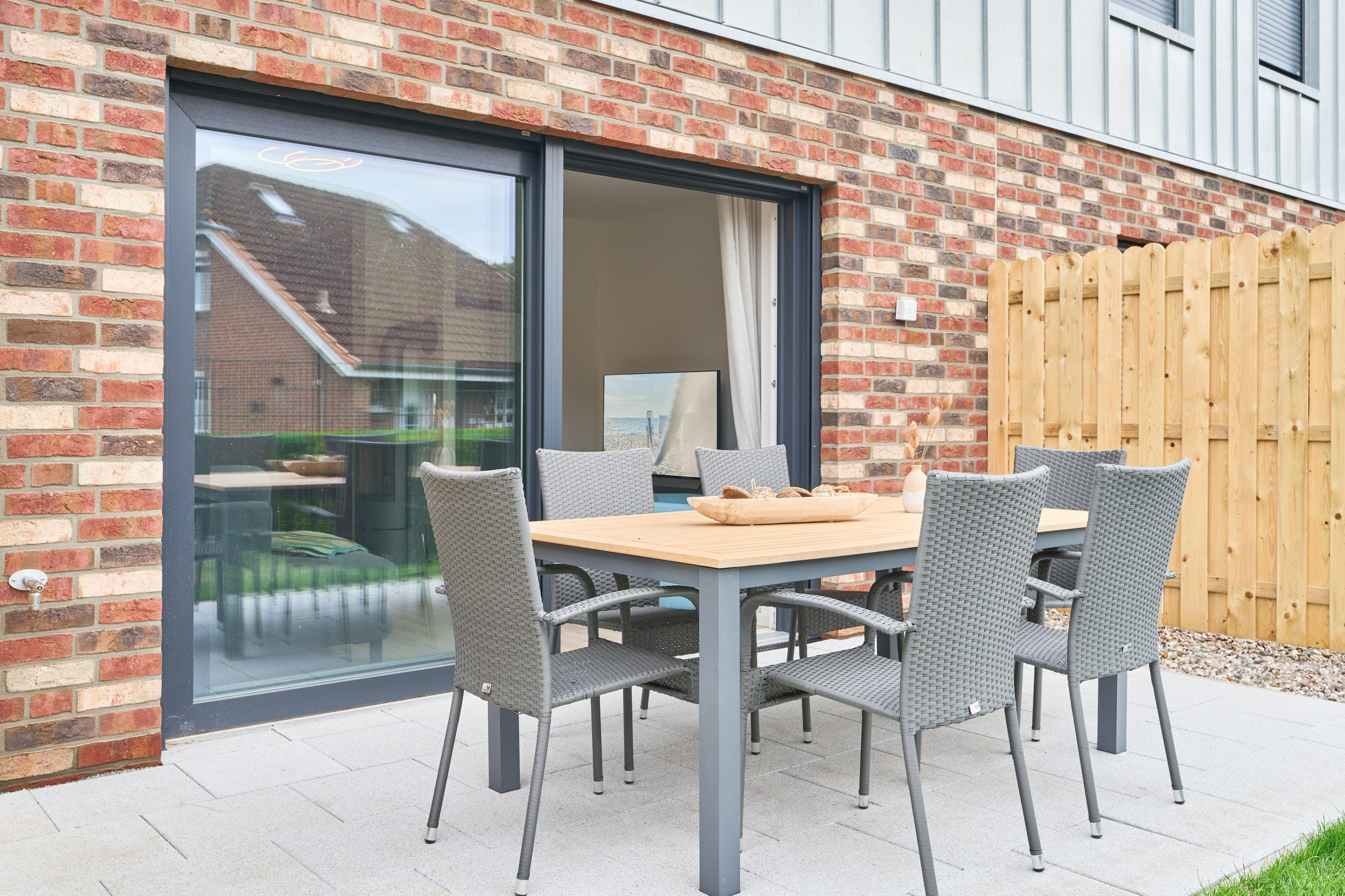 Modernes Reihenendhaus in Haffkrug mit Südterrasse, Kamin und E-Ladestation, nahe Strand und Kurpark.