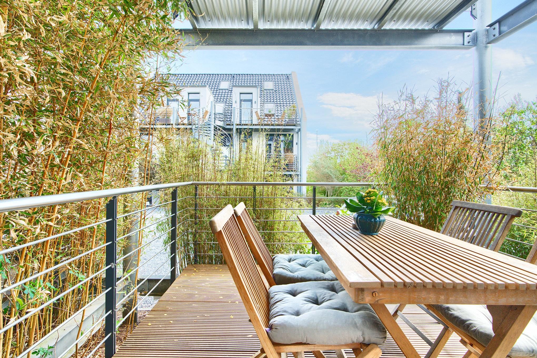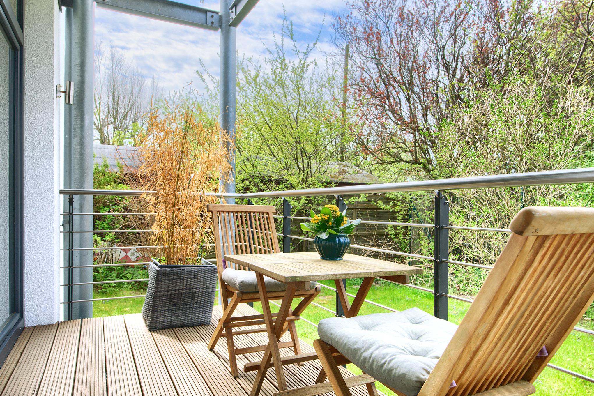Moderne Ferienwohnung in Haffkrug mit Strandnähe, zwei Balkonen und Fußbodenheizung für entspannte Urlaubstage.