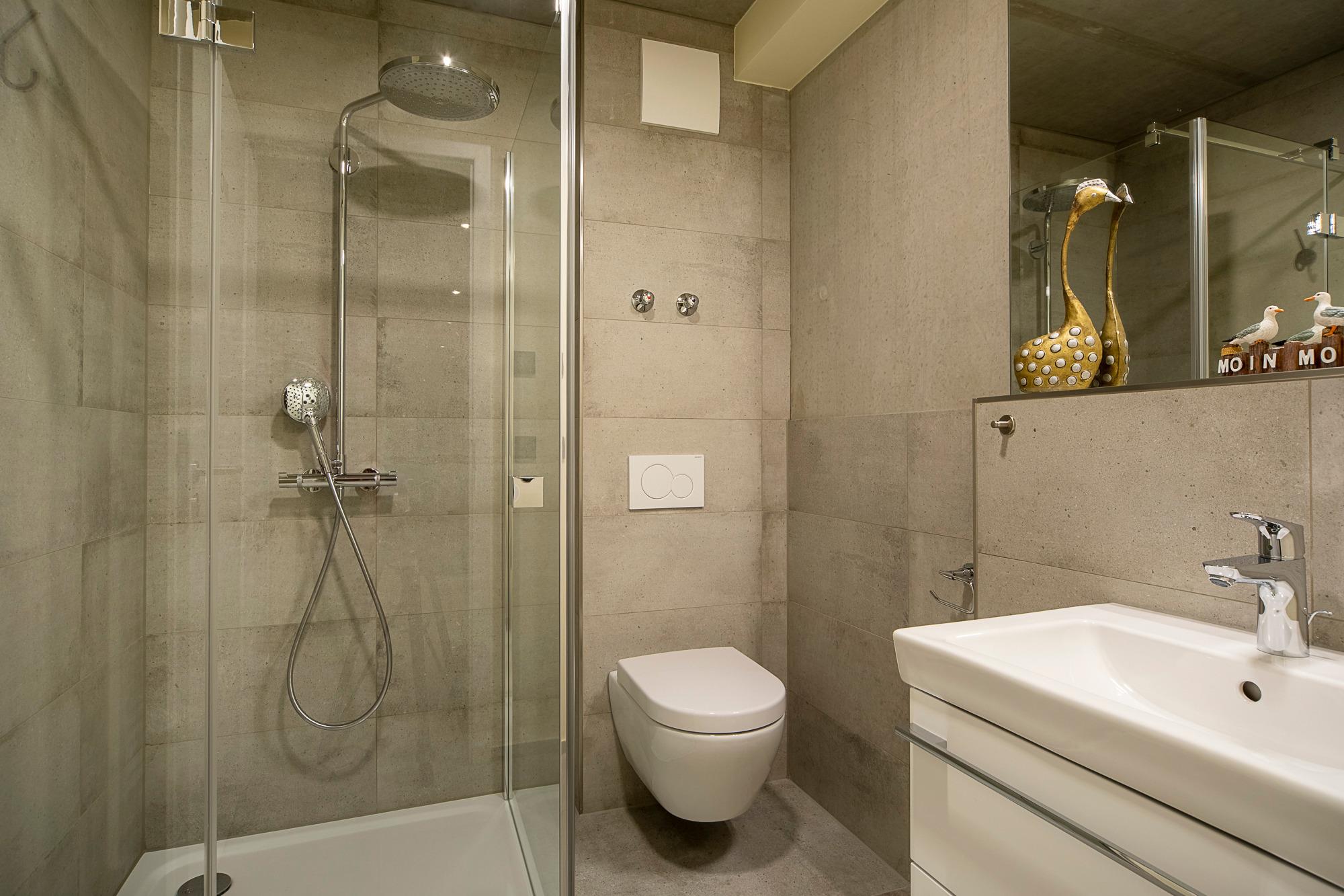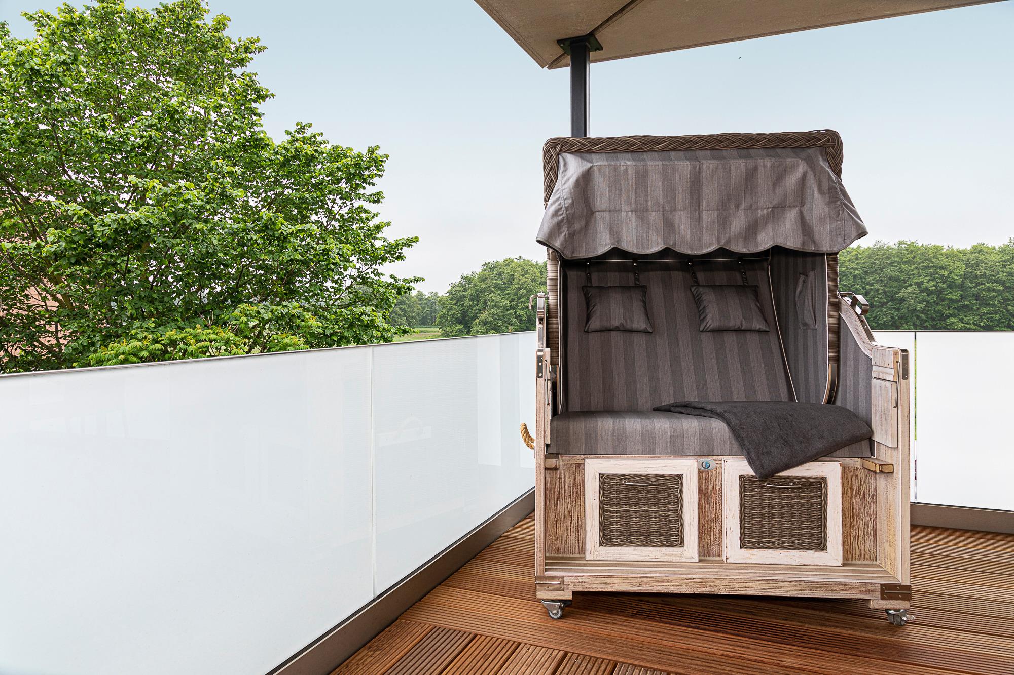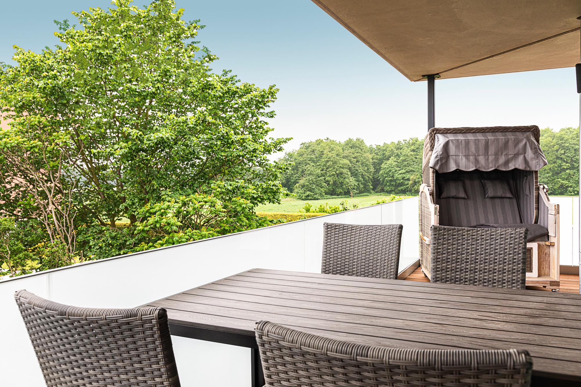 Diese 2-Zimmerwohnung besticht durch zeitlos elegante Einrichtung (Design-Pandomo-Fußboden). Das helle Wohnzimmer mit Flachbild-TV, einem Sofa, das mit wenigen Handgriffen zu einem weiteren Schlafplatz umgebaut werden kann (Liegefläche1,60 x 2,00m) sowie einer komplett ausgestatteten Küchenzeile eignet sich für einen komfortablen Urlaub. Großzügiges Schlafzimmer mit einem Boxspringbett (1,80 x 2,00m), durchgehende Matratze (der Firma Jensen), Kleiderschrank, Kommode und TV. Das Bad ist mit einer bodengleichen Dusche / Regendusche sowie einem Handtuchheizkörper ausgestattet. Großer halb umlaufender Balkon nach Südwesten, mit seitlichem Ostseeblick sowie einem weiten Blick ins Grüne – hier genießen Sie die Mittags- und Nachmittagssonne, bis zum Abend. Gartenmöbel sowie ein Strandkorb werden Sie hier zum Lesen oder einfach nur zum Träumen einladen. Zur komfortablen und sicheren Unterbringung Ihres PKWs steht Ihnen ein Außenstellplatz direkt am Haus zur Verfügung, hier steht Ihnen auch eine E-Ladestation für Ihr E-Auto (kostenpflichtig und saisonbedingt) zur Verfügung. Ebenso im Haus ein Gemeinschaftsraum mit Waschmaschine und Trockner, die über einen Münzzähler bedient werden. Auch Fahrräder können sicher im abschließbaren Fahrradraum untergestellt werden.