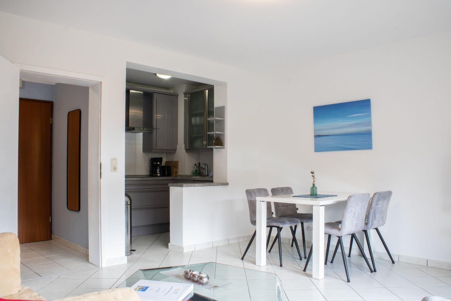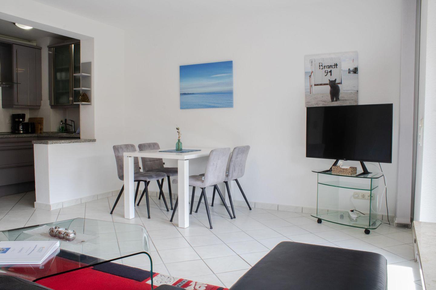 Das ca. 56 qm große 3-Zimmer-Terrassen-Appartement hat einen gemütlichen Garten zur alleinigen Nutzung im Aalweg 6 in Haffkrug. Der Strand ist fußläufig in ca. 750 m zu erreichen. Der großzügige Wohnraum ist hell gefliest, hat eine integrierte Einbauküche mit angeschlossenem Essplatz. Die Küche ist mit allem Komfort komplett ausgestattet. Die überdachte Terrasse und auch der Garten steht Ihnen zur alleinigen Nutzung zur Verfügung. Der neu angelegte Grillplatz verfügt über einen modernen Holzkohlegrill und darf unter Ihrer Beaufsichtigung genutzt werden. Die Wohnung verfügt über 2 Schlafzimmer. Das eine Schlafzimmer ist mit einem Doppelbett (2 x Einzelmatratzen) ausgestattet und im Kinderzimmer steht ein Standard-Bett, das bequemen Schlafkomfort bietet. Darüber hinaus verfügt die Ferienwohnung über ein modernes Duschbad mit ebenerdiger Dusche und wärmendem Handtuchhalter. Der Wohnraum und das Kinderzimmer sind mit elektrischen Rollläden ausgestattet.