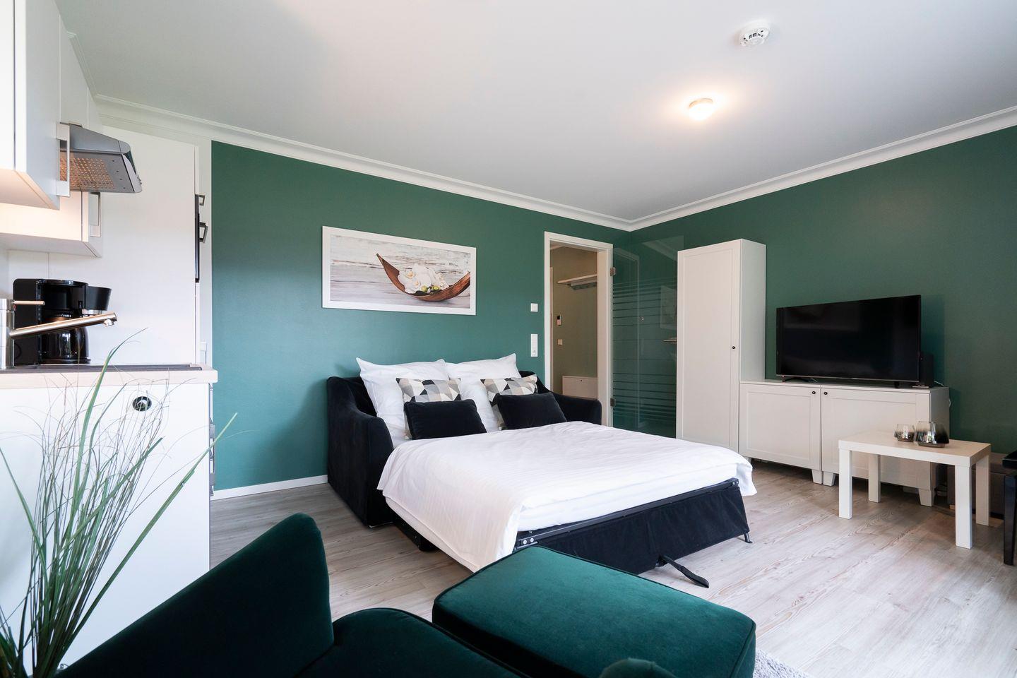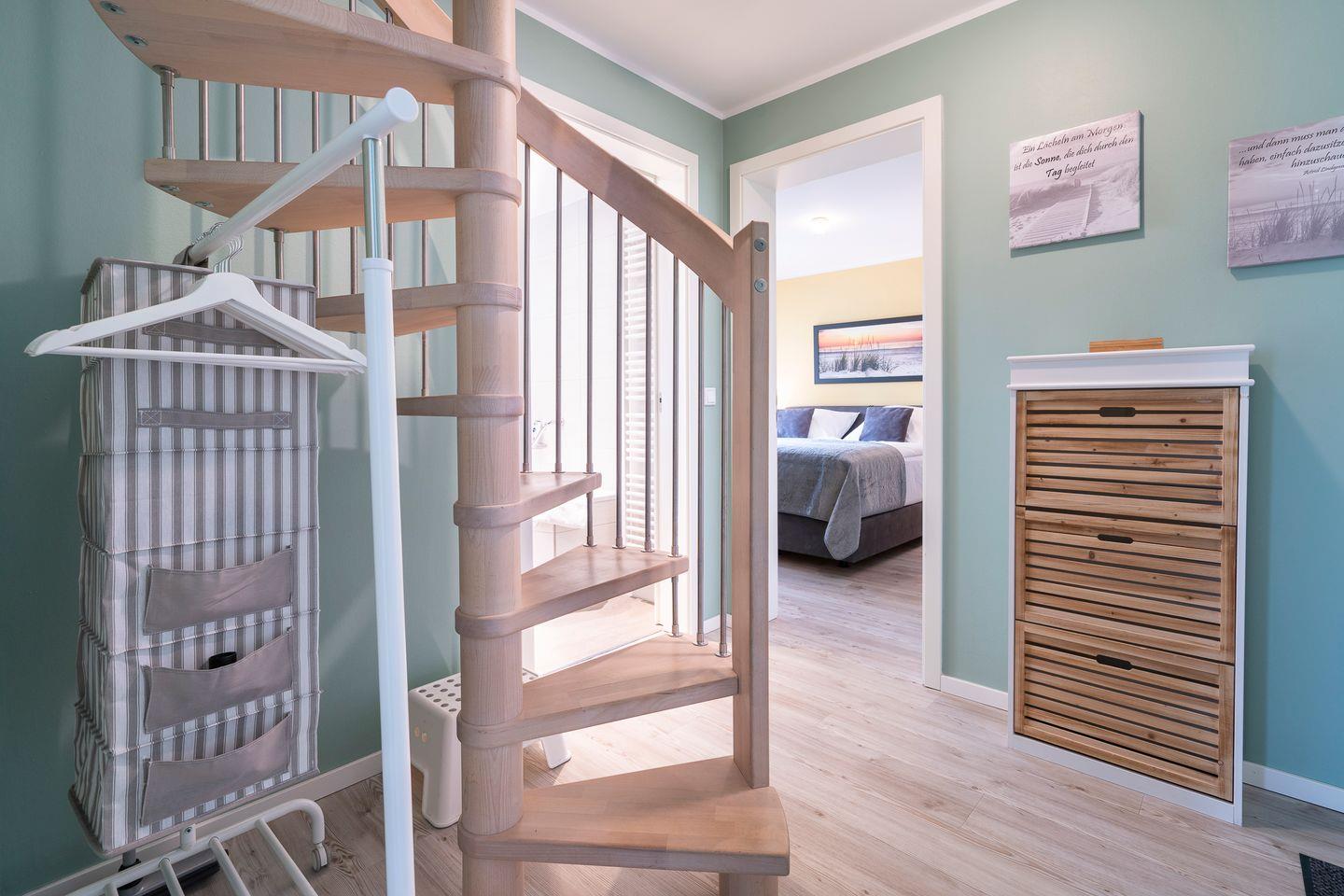 Herzlich willkommen in dieser einzigartigen Maisonette-Ferienwohnung, die Eleganz und Komfort nahtlos miteinander verbindet. Gelegen auf zwei Ebenen, bietet dieses Appartement durch seine kluge Raumteilung perfekte Wohnmöglichkeiten sowohl für Familien als auch für zwei Paare. Eine geschmackvolle Wendeltreppe führt euch vom Eingangsbereich in den geräumigen Erdgeschossbereich. Genießt die Ruhe auf der gepflegten Terrasse in Westlage, umgeben von grünem Rasen und schützenden Hecken, die einen idyllischen Rückzugsort für entspannte Stunden bieten. Zusätzlichen Komfort verspricht ein überdachter Parkplatz direkt hinter dem Haus, wo sich ebenfalls der Haupteingang und ein praktischer Fahrradständer befinden. In der Wohnung gibt es kostenfreies WLAN (bei Störungen kein Anspruch auf Erstattung oder Ersatz). Entdeckt den idealen Ausgangspunkt für eure Urlaubstage in dieser Nichtraucher-Ferienwohnung!