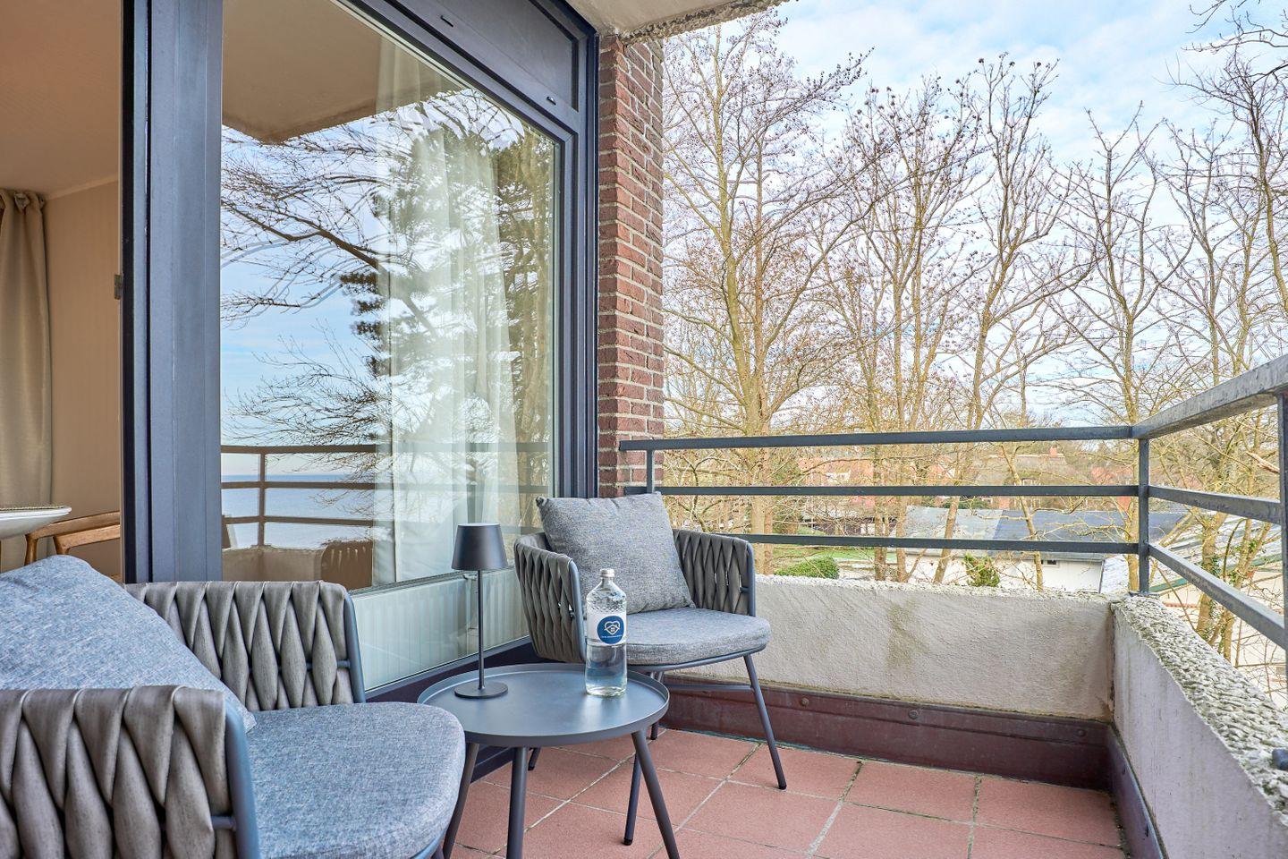 Neu renovierte Ferienwohnung Baltic Beach Haffkrug mit Balkon und direktem Ostseeblick, nur 30 Meter vom Strand entfernt.