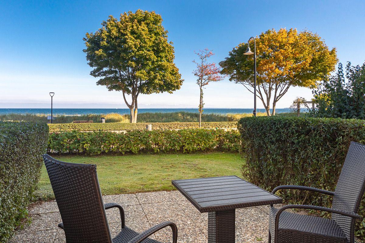 Zauberhafte Ferienwohnung "Strandmuschel" direkt am Strand von Haffkrug mit Meerblick und privater Terrasse.