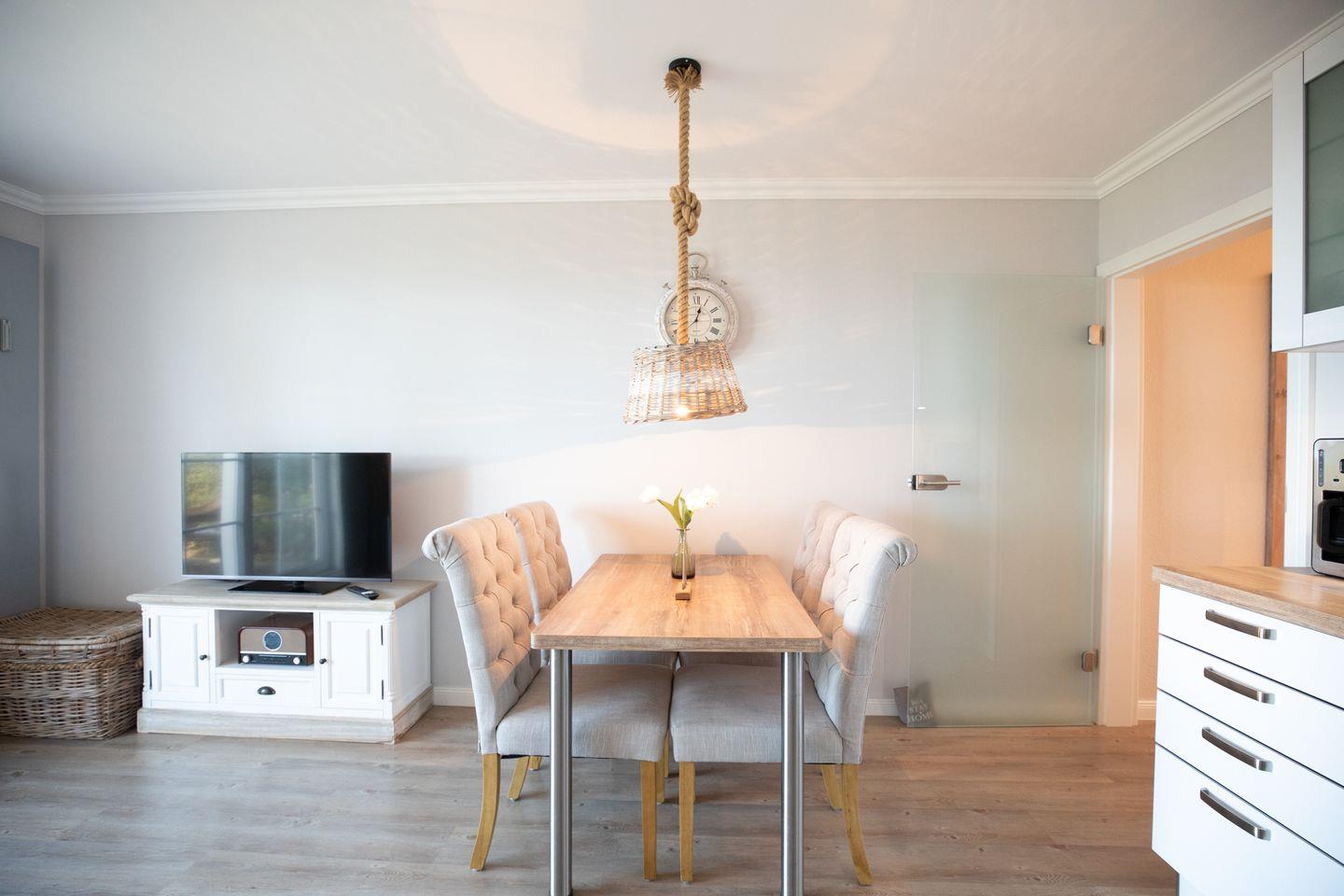 Ein Strandkorb steht Ihnen für den gesamten Urlaubszeitraum (ca. 15.5. - 15.9.) kostenfrei zur Verfügung. Diese Nichtraucherwohnung bietet zudem einen Stellplatz für Ihr Auto auf dem Grundstück sowie einen Fahrradkeller. Ein Grillplatz, eine gepflegte Liegewiese im hinteren Bereich des Hauses, eine Waschmaschine, ein Trockner und sogar eine Sauna gehören ebenfalls zur Ausstattung der Wohnung.
