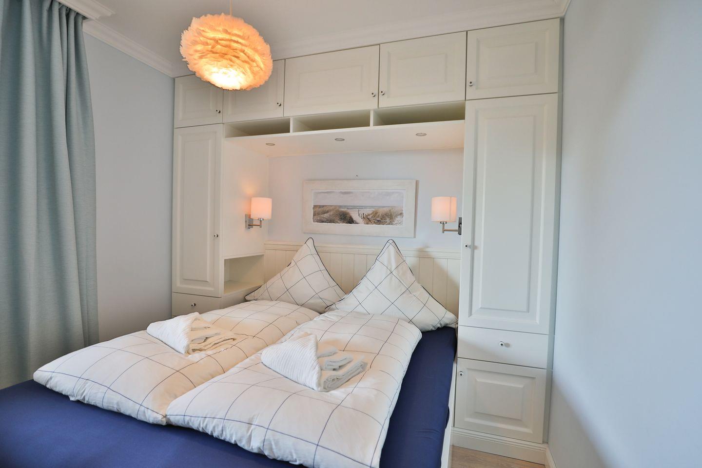 Im Schlafzimmer erwartet Sie ein äußerst komfortables Doppelbett und ausreichend Stauraum im geräumigen Kleiderschrank.