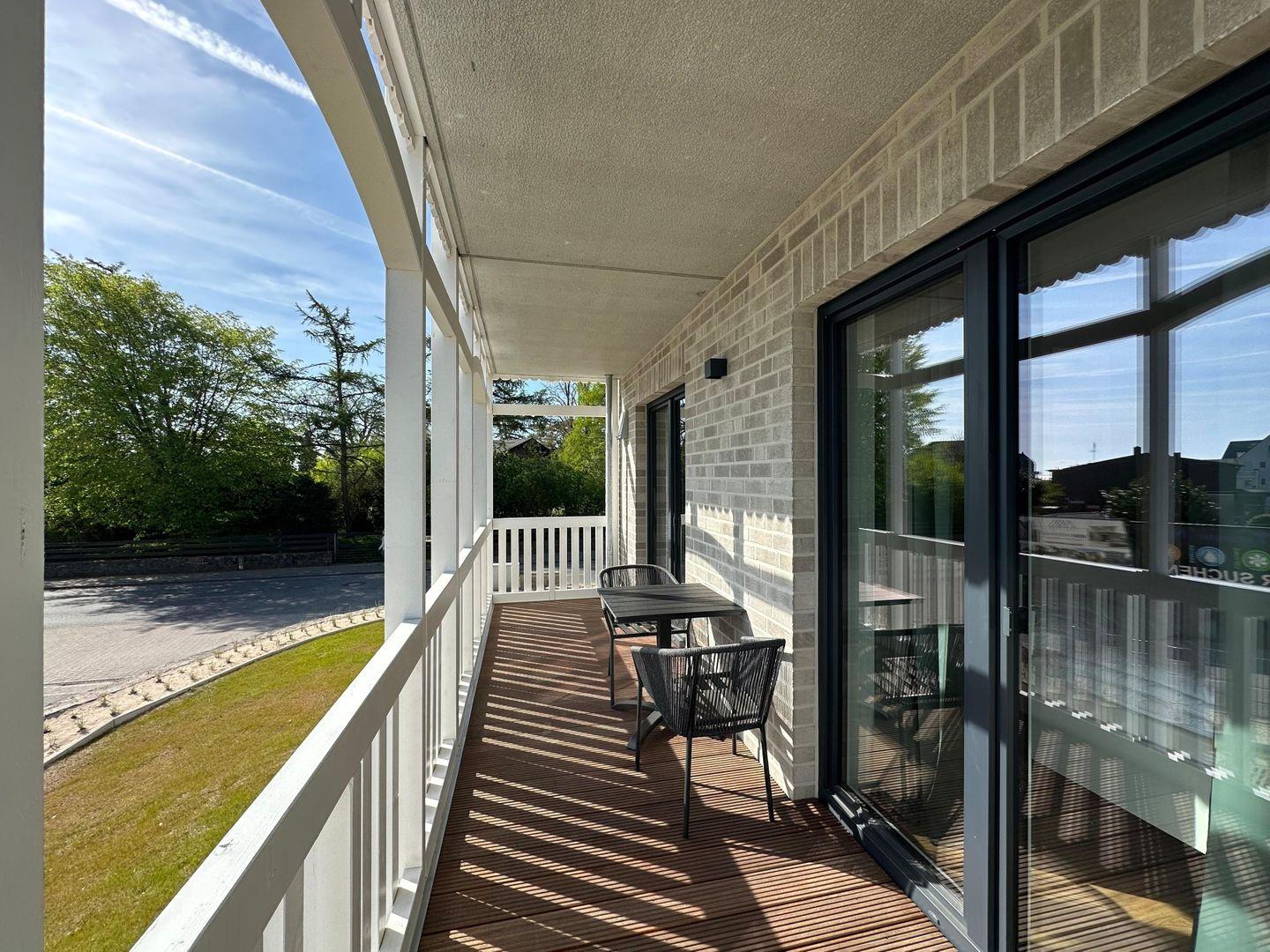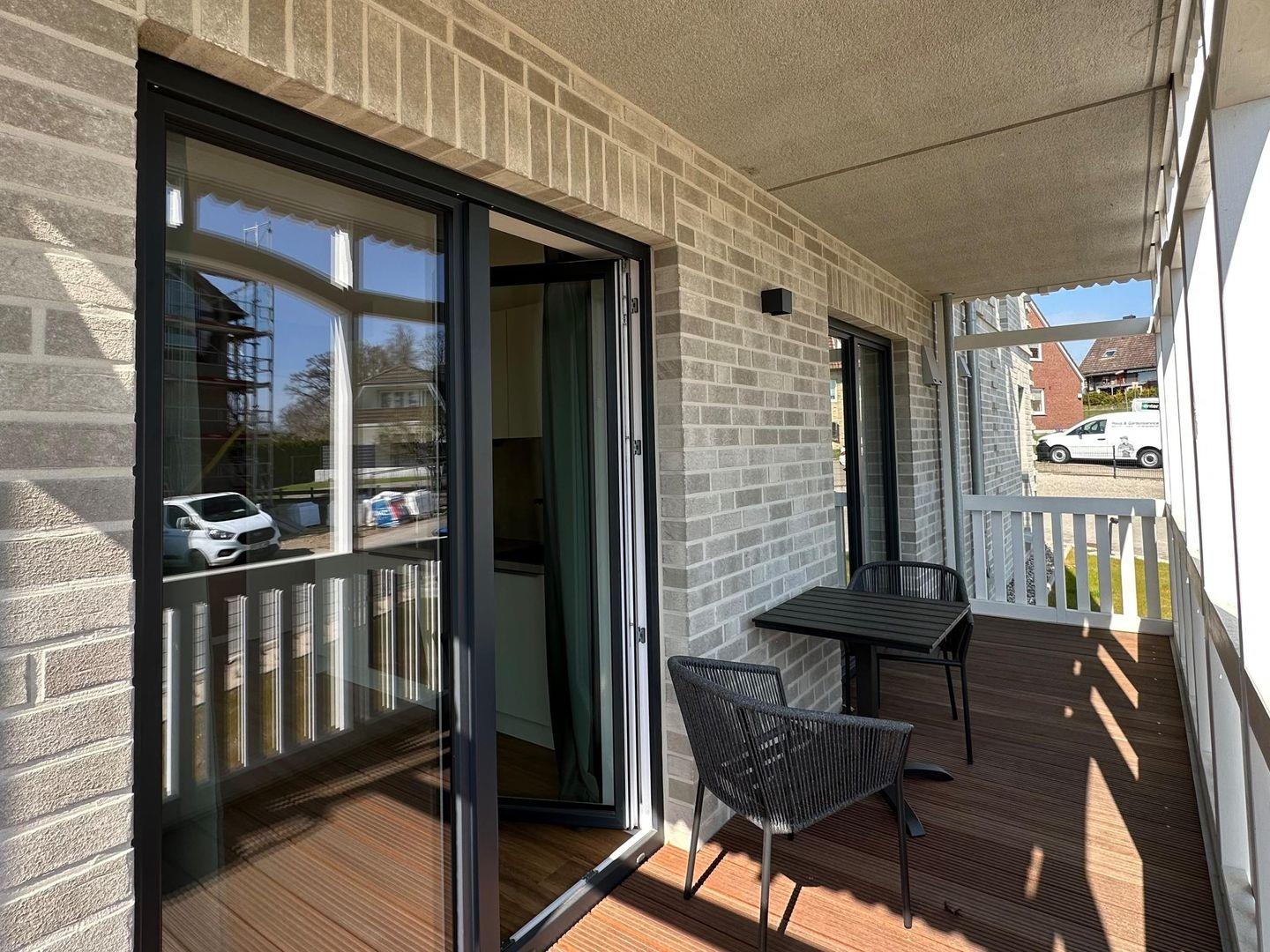 Moderne Ferienwohnung "Sun" in Haffkrug mit überdachtem Balkon und Teilmeerblick, nur wenige Gehminuten vom Strand entfernt.