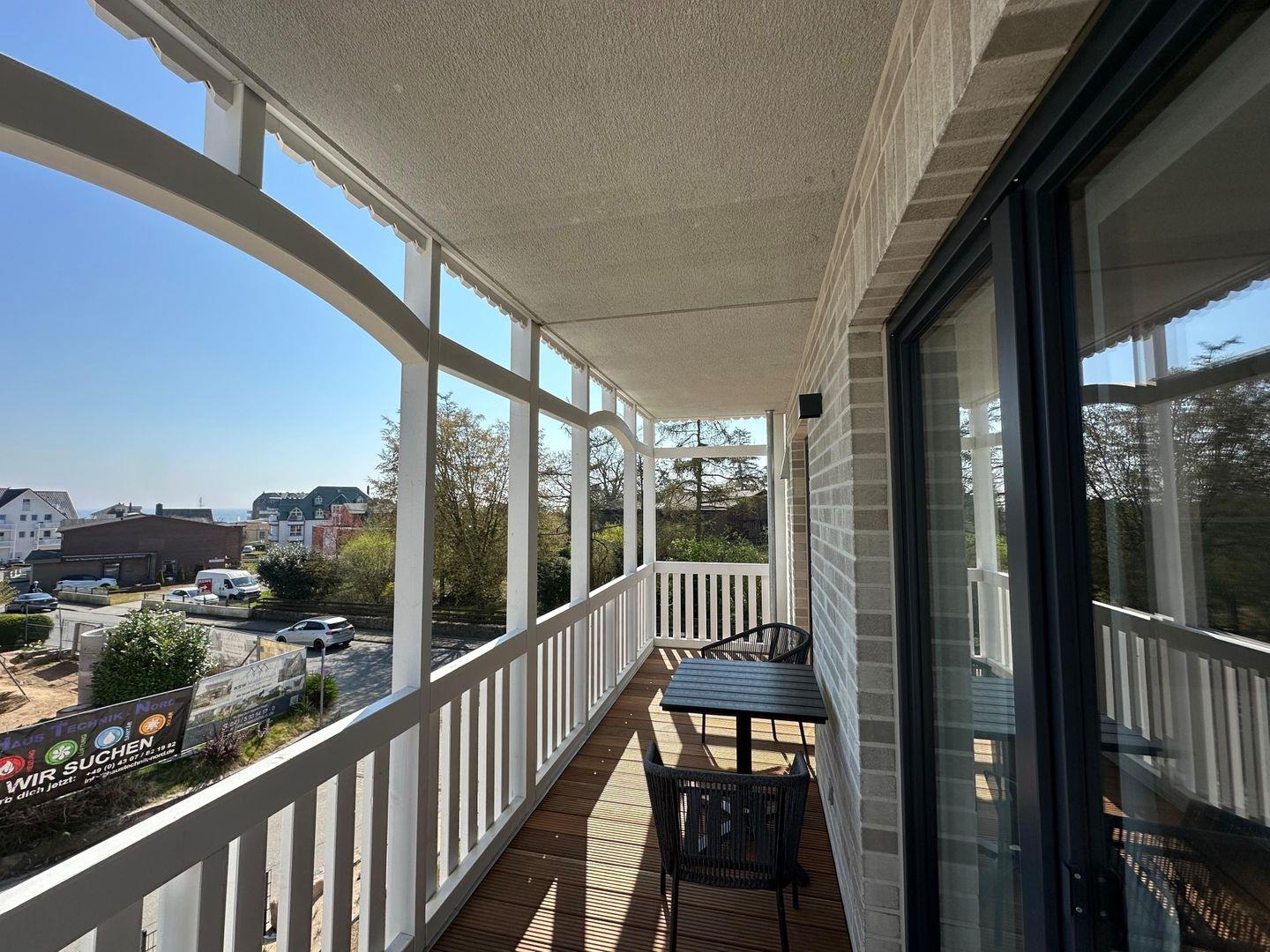 Zwei Balkone, einer nach Osten, einer nach Süden ausgerichtet, bieten je nach Tageszeit sonnige Plätze zum Frühstücken oder Entspannen.