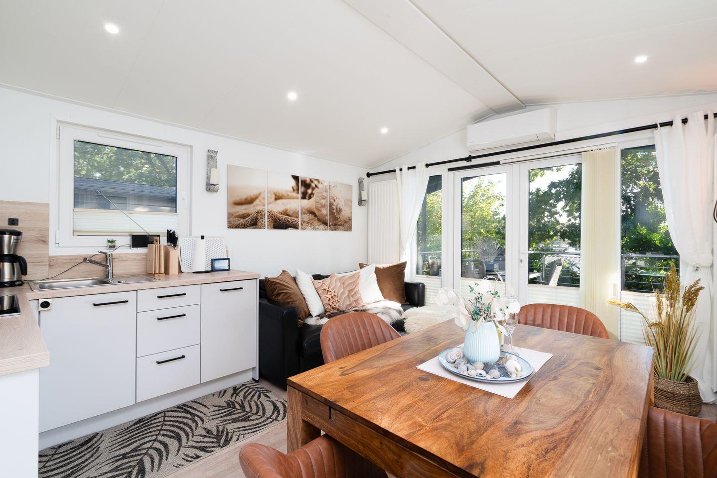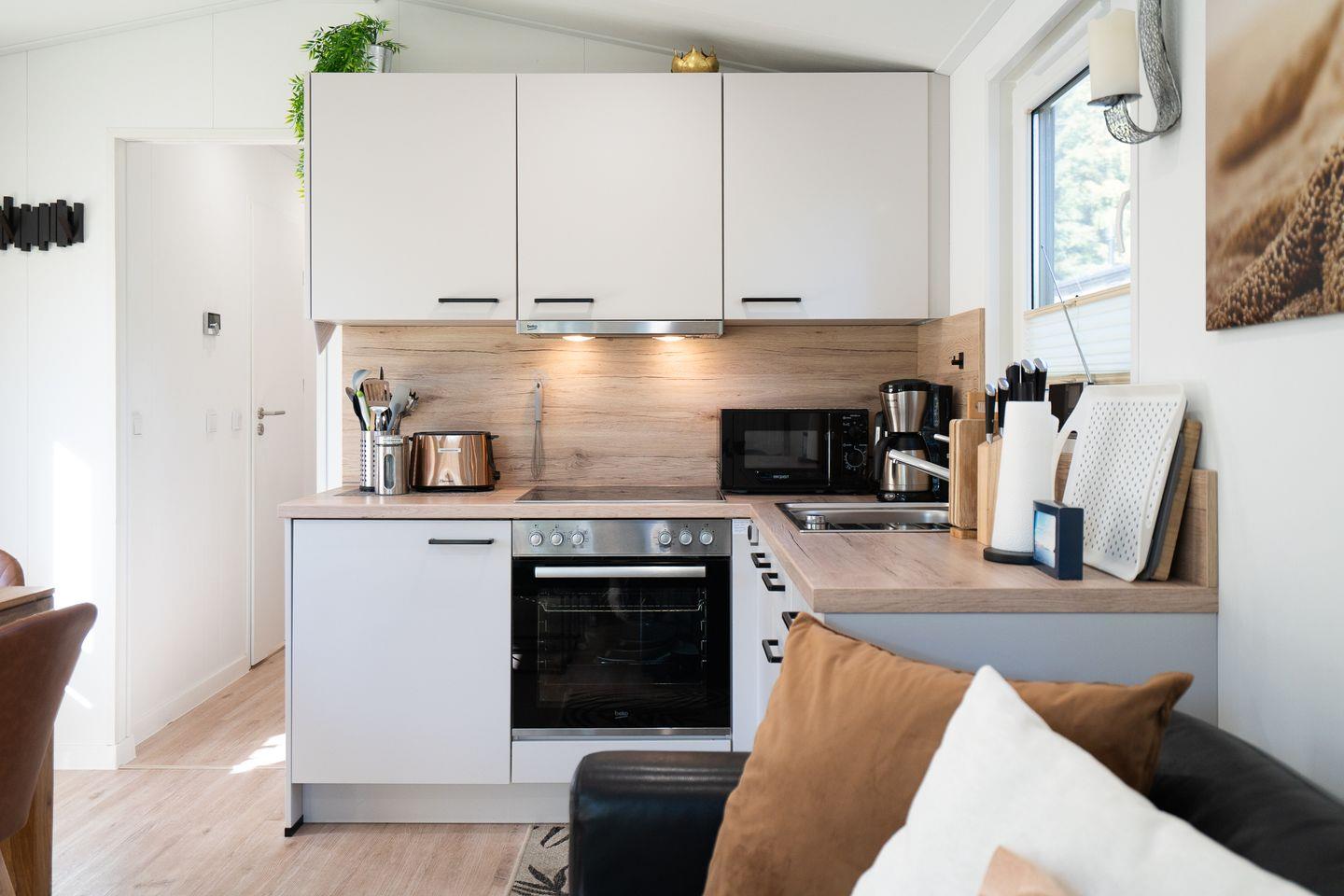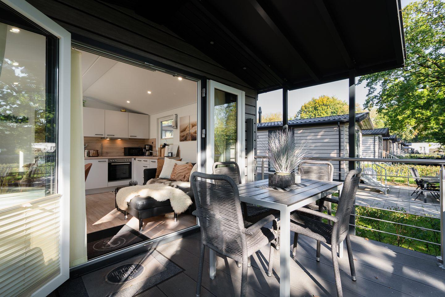 Freistehendes Mobilheim mit Garten und Terrasse im Ferienhauspark Lübecker Bucht in Haffkrug.