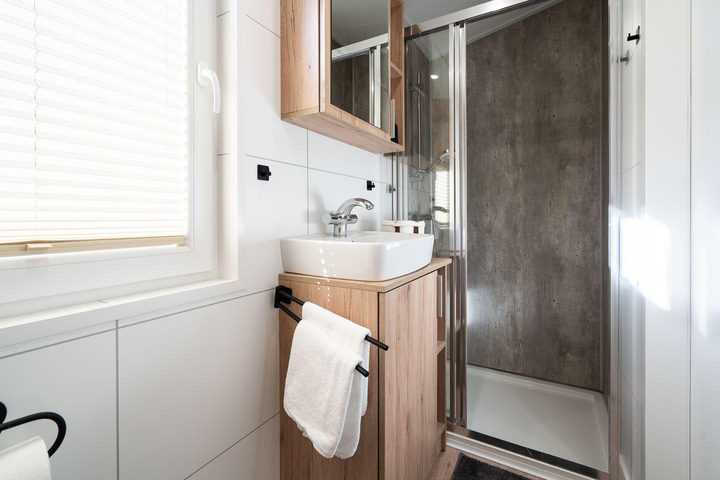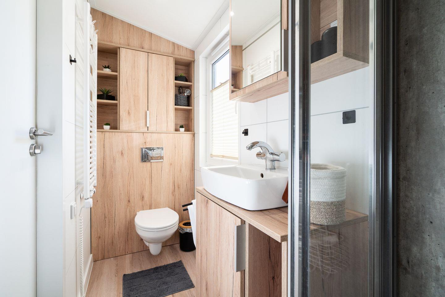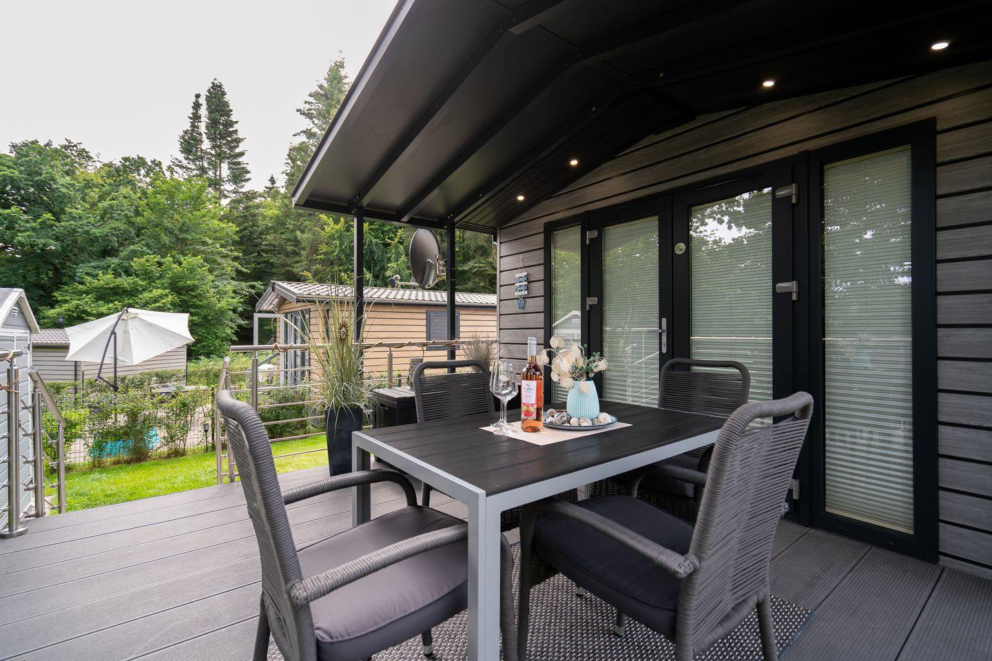 Freistehendes Mobilheim mit Garten und Terrasse im Ferienhauspark Lübecker Bucht in Haffkrug.