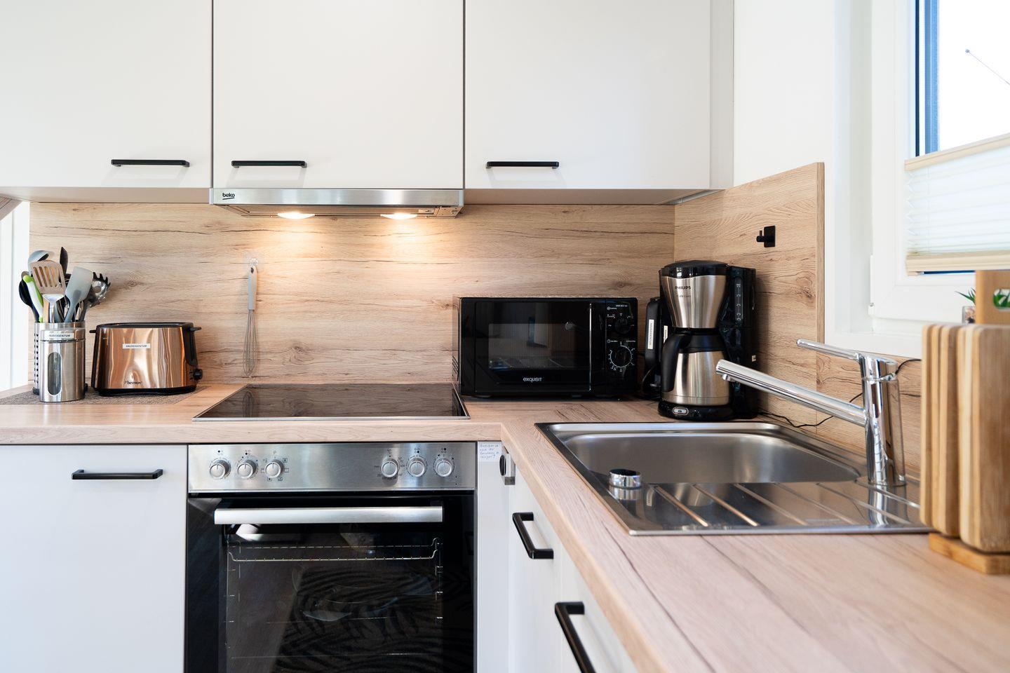 Zur Ausstattung gehören kostenfreies gesichertes WLAN, zwei Smart-TVs mit Satelliten-Empfang, ein Privatparkplatz direkt am Haus sowie eine Klimaanlage (gegen Aufpreis). Im abschließbaren Fahrradschuppen können eigene Räder sicher abgestellt werden, E-Bikes lassen sich bequem über die Außensteckdose laden.