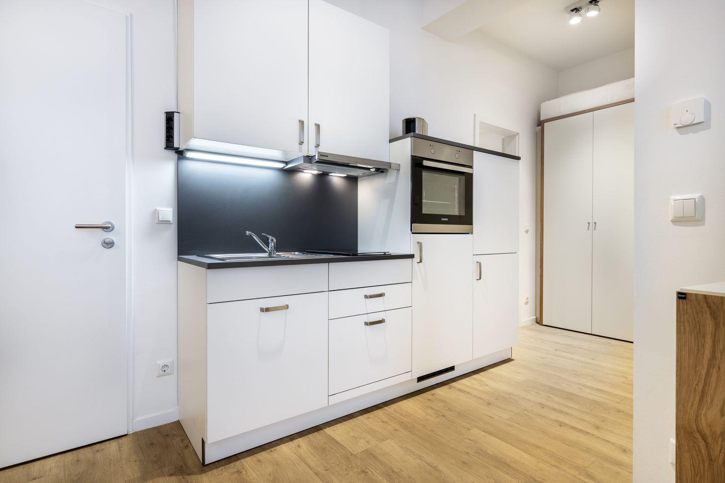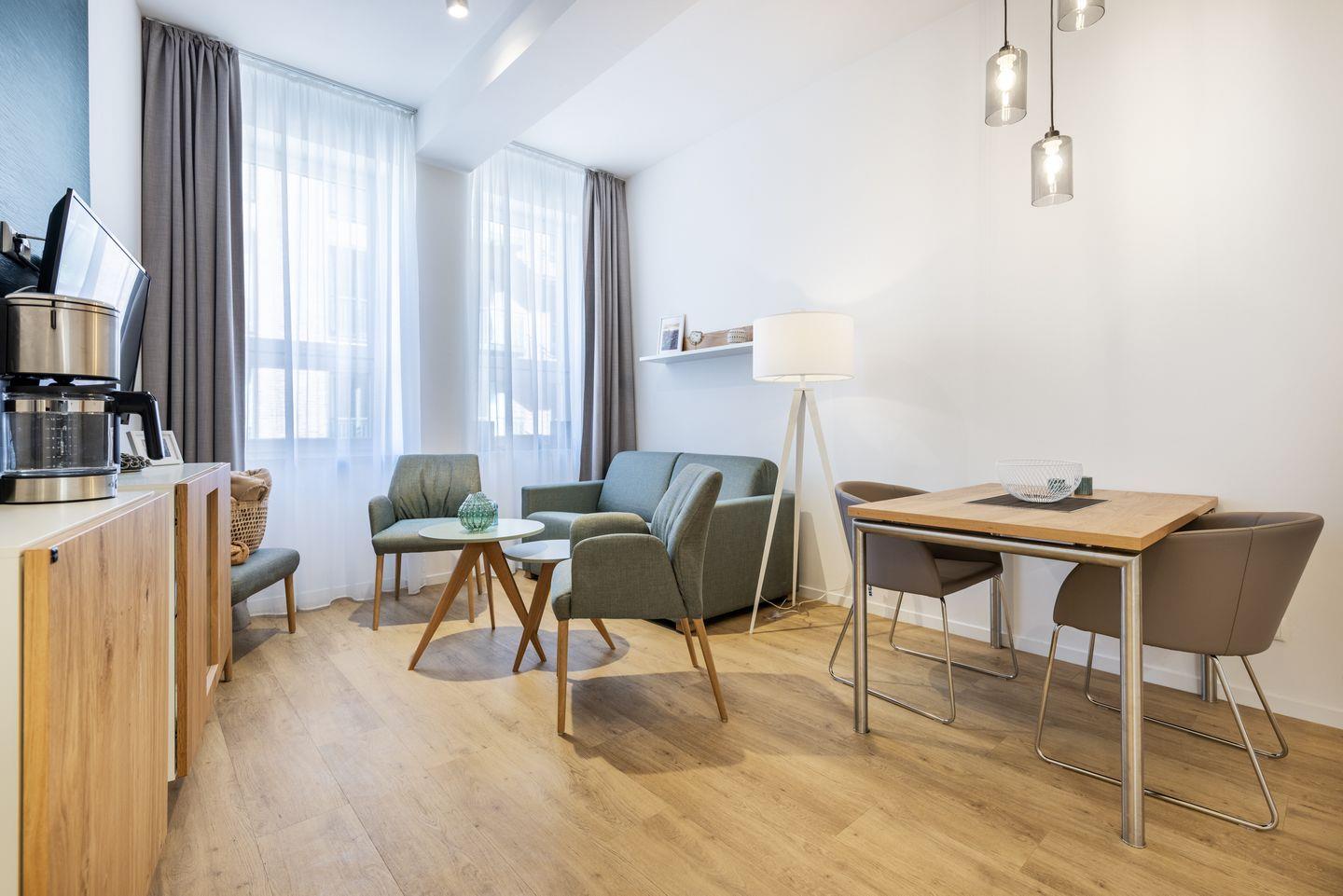 Das helle und moderne Nichtraucher-Apartment verfügt über Fußbodenheizung, kostenfreies WLAN und eine voll ausgestattete offene Küche mit Geschirrspüler, Kühlschrank, einen Herd mit 2 Glaskeramikkochfeldern und Backofen, Kaffeemaschine, Toaster, Wasserkocher und Mixstab. Im separaten Schlafzimmer befindet sich ein komfortables Boxspring-Doppelbett (1,80 x 2,00 m) und ein Flatscreen-TV (40 Zoll). Im kombinierten Wohn-Essbereich stehen Euch ein Flatscreen-TV (40 Zoll) und eine Musikanlage sowie eine Einzelschlafcouch (1,20 x 1,95 m) zur Verfügung. Das Apartment verfügt über einen Safe für Laptopgröße bis ca. 17 Zoll. Im modernen Badezimmer befinden sich eine ebenerdige Regendusche, ein Waschtisch, WC, ein Handtuchwärmer sowie ein Föhn.