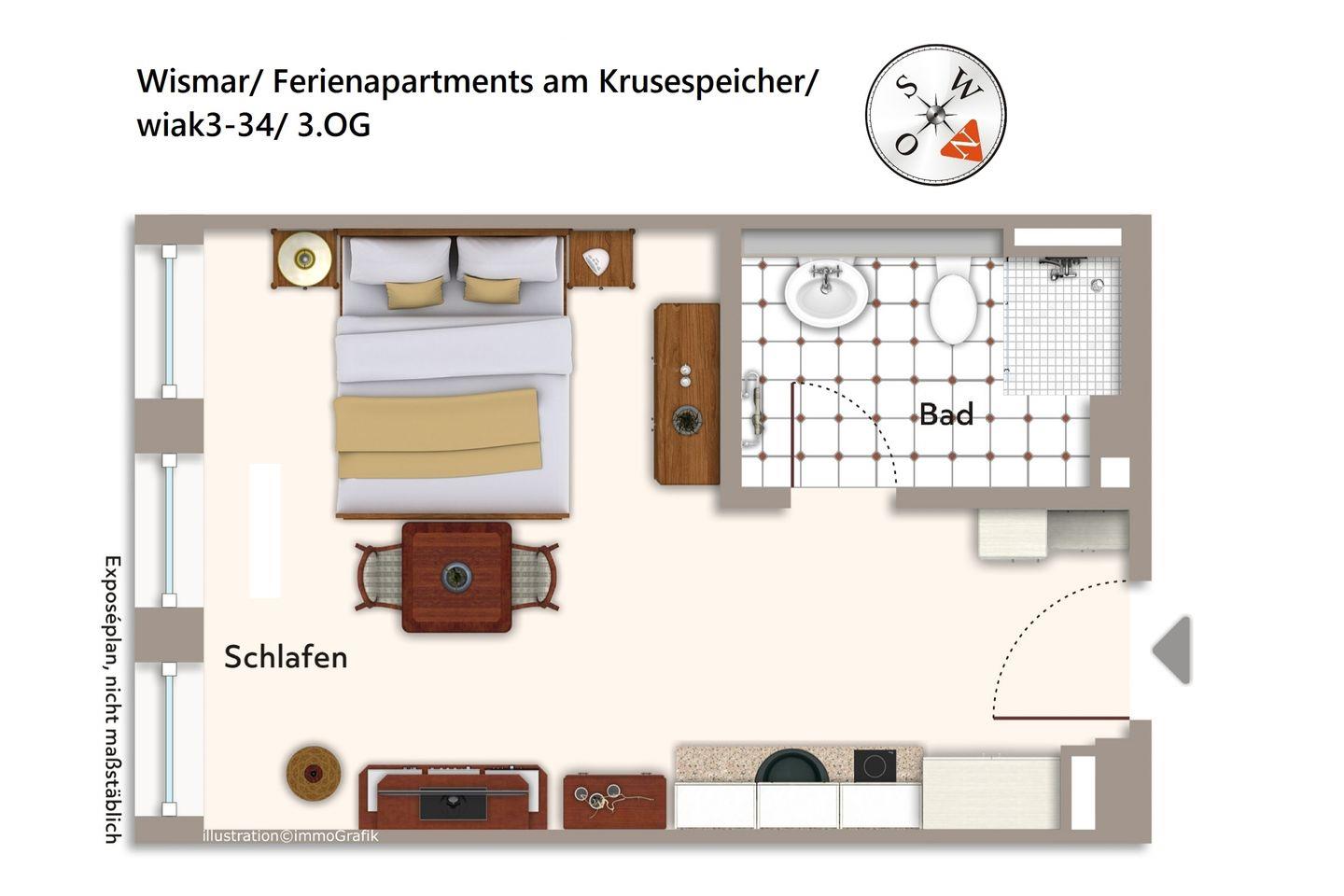 Das hochwertige Apartment befindet sich in südöstlicher Lage im dritten Obergeschoss des Gebäudes. Der Alte Hafen von Wismar, einer der attraktivsten Orte der Hansestadt, liegt euch hier zu Füßen. Von hier aus lässt sich die Stadt und das schöne Umland ideal erkunden. Der Alte Hafen ist übrigens auch ein sehr beliebter Veranstaltungsort für Events und Feste.