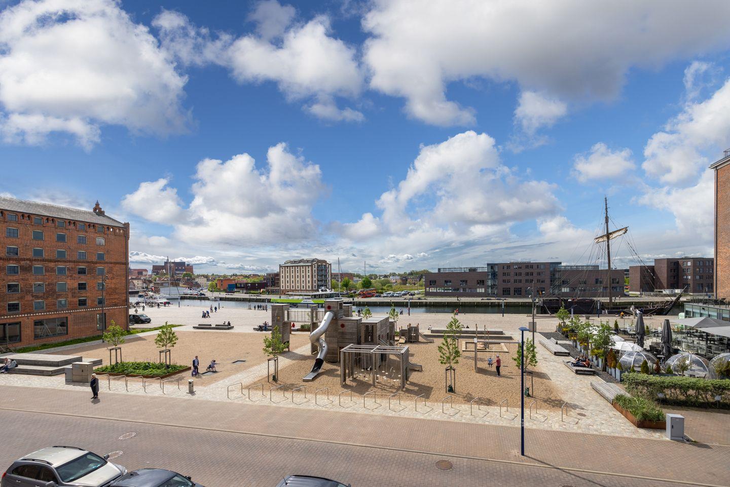 Modernes, familienfreundliches Apartment mit Hafenblick in Wismar, ideal für entspannte Ostseeferien.