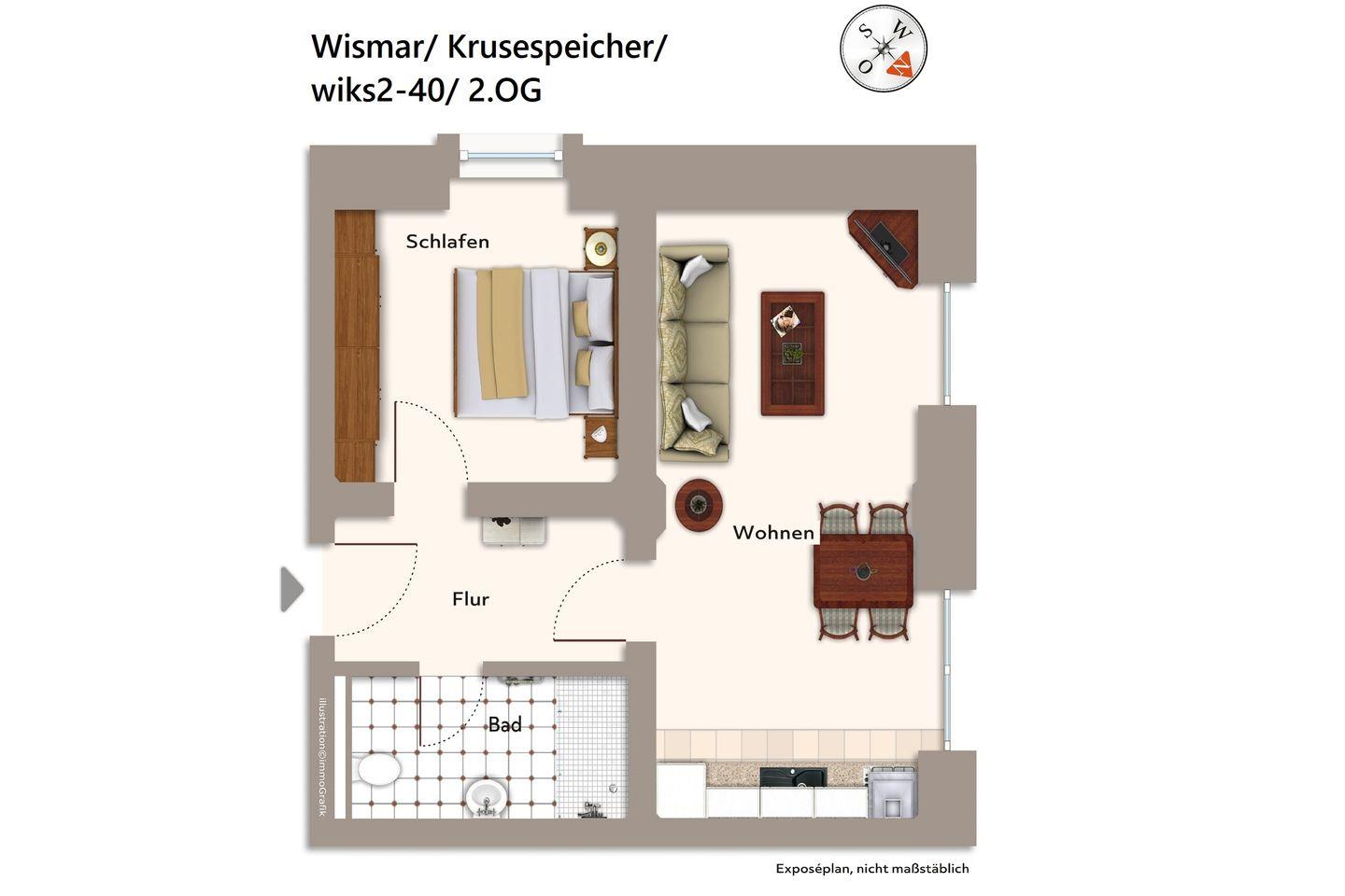 Das Nichtraucher-Apartment in Süd-Lage befindet sich im 2. Obergeschoss des denkmalgeschützten Krusespeichers. DDer Alte Hafen von Wismar, einer der attraktivsten Orte der weltoffenen Hansestadt, liegt euch zu Füßen. Von hier aus lässt sich die Stadt und das wunderschöne Umland ideal erkunden. Der Alte Hafen ist übrigens überaus beliebter Veranstaltungsort für Events und Feste und überdies Original-Drehort für SOKO Wismar, die bekannte ZDF-Serie!