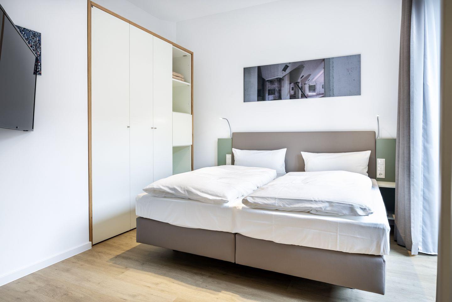 Das helle Apartment verfügt über bodentiefe Fenster, Fußbodenheizung, kostenfreies WLAN und eine voll ausgestattete offene Küche mit Geschirrspüler, Kühlschrank mit Tiefkühlfach, Herd mit 4 Glaskeramikkochfeldern und Backofen, Kaffeemaschine, Toaster, Wasserkocher und Mixstab. Im kombinierten Wohn-Essbereich befinden sich eine Einzelschlafcouch (1,20 x 2,00 m), ein Flatscreen-TV (42 Zoll), eine HiFi-Anlage sowie Gesellschaftsspiele. Genießt schöne Stunden auf dem Balkon mit Blick zum Hafen. Das Schlafzimmer beinhaltet ein komfortables Boxspring-Doppelbett (1,80 x 2,00 m) und einen Flatscreen-TV (42 Zoll). Im geschmackvollen Badezimmer stehen euch eine ebenerdige Regendusche, ein Waschtisch, WC, ein Handtuchwärmer sowie ein Föhn zur Verfügung. Das Apartment verfügt über einen Safe für eine Laptopgröße bis ca. 17 Zoll.