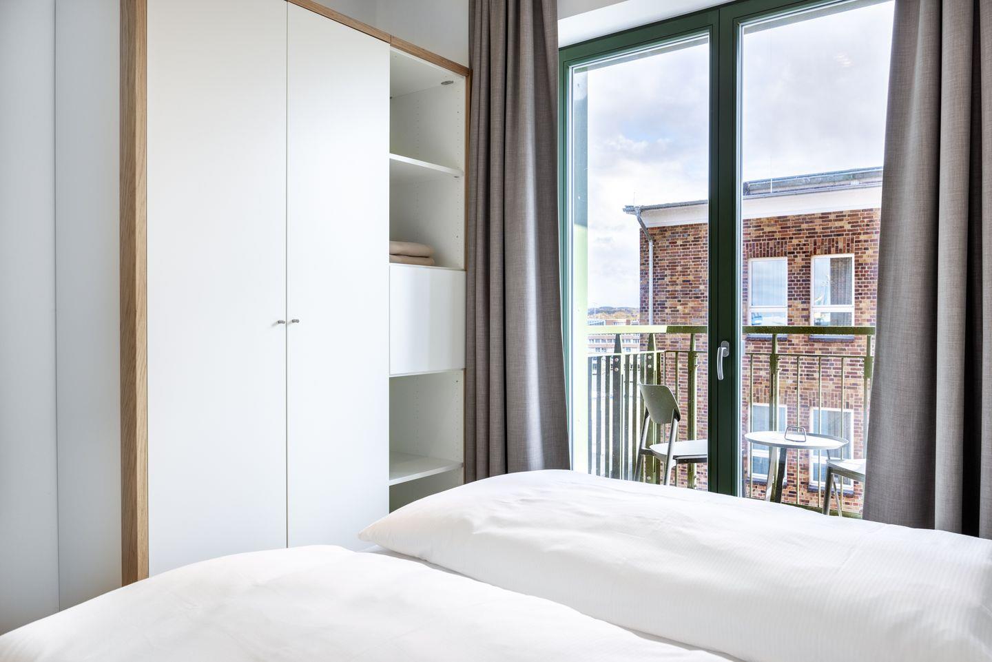 Das helle Apartment verfügt über bodentiefe Fenster im Schlafzimmer, Fußbodenheizung, kostenfreies WLAN und eine voll ausgestattete offene Küche mit Geschirrspüler, Kühlschrank mit Tiefkühlfach, Herd mit 4 Glaskeramikkochfeldern und Backofen, Kaffeemaschine, Toaster, Wasserkocher und Mixstab. Im kombinierten Wohn-Essbereich befinden sich eine Doppelschlafcouch (1,40 x 2,00 m), ein Flatscreen-TV (42 Zoll), eine HiFi-Anlage sowie Gesellschaftsspiele. Genießt schöne Stunden auf dem Balkon mit Blick zum Hafen. Das Schlafzimmer beinhaltet ein komfortables Boxspring-Doppelbett (1,80 x 2,00 m) und einen Flatscreen-TV (42 Zoll). Im geschmackvollen Badezimmer stehen euch eine ebenerdige Regendusche, ein Waschtisch, WC, ein Handtuchwärmer sowie ein Föhn zur Verfügung. Das Apartment verfügt über einen Safe für eine Laptopgröße bis ca. 17 Zoll. Haustiere sind in diesem Apartment herzlich willkommen.